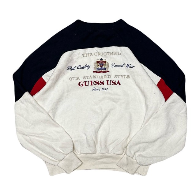 90s GUESS ゲス 刺繍 スウェット トレーナー 白×紺×赤 Lサイズ No.EA18