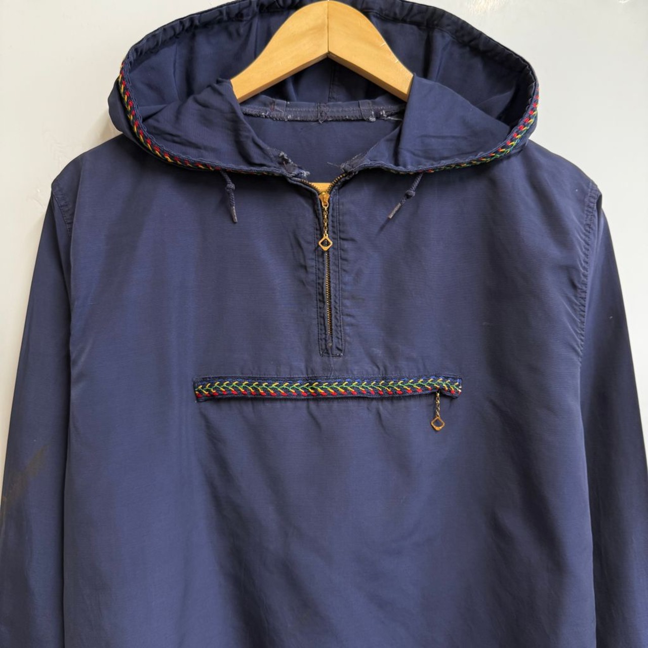 〜60's アノラックパーカー フーディー パーカー ポケット付き プルオーバー ハーフジップ 刺繍 紺×カラフル No.J403