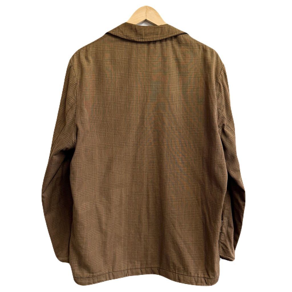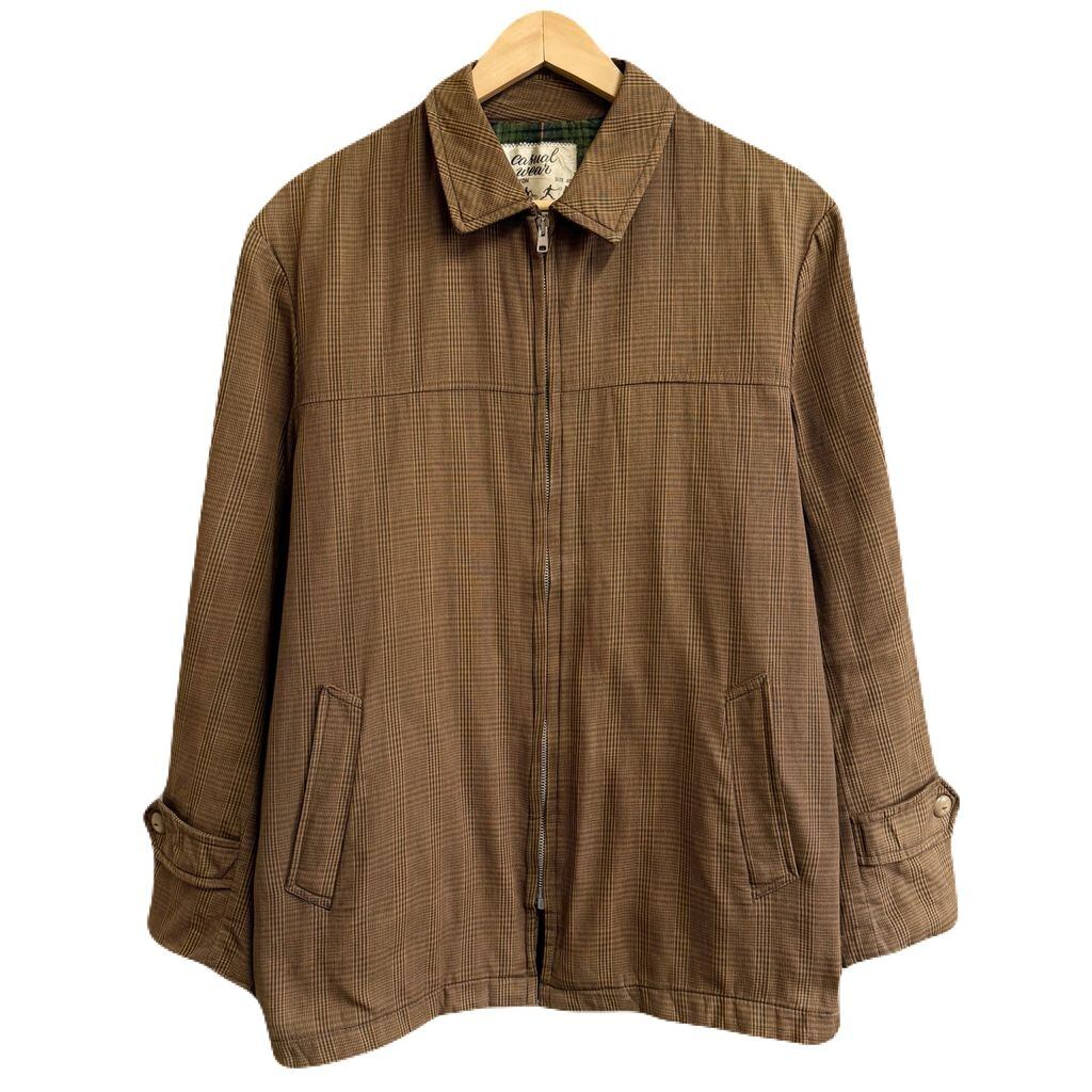 ブルゾン ジャケット 総柄 柄ジャケット チェック柄 フルジップ ポケット付き 裏地チェック柄 コットンジャケット 茶×黒 No.J409