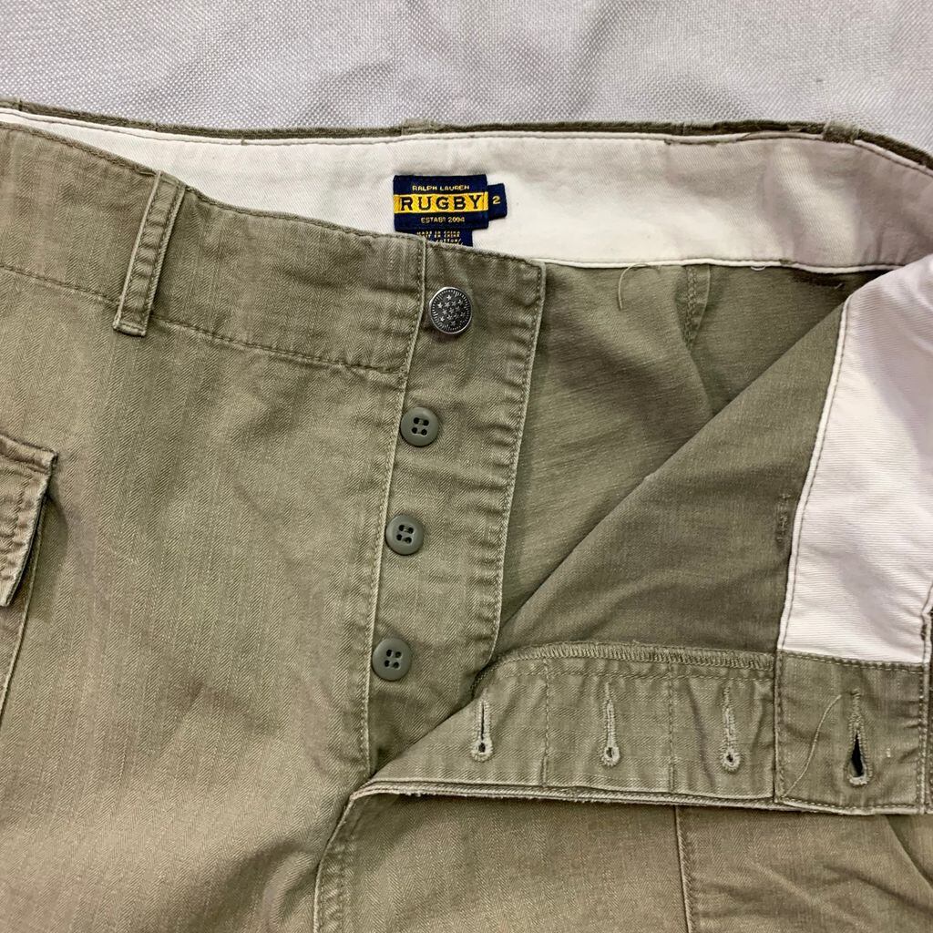 RUGBY ラグビー RALPH LAUREN ラルフローレンヘリンボーンツイル ショートパンツカーキ 2サイズ No.I005