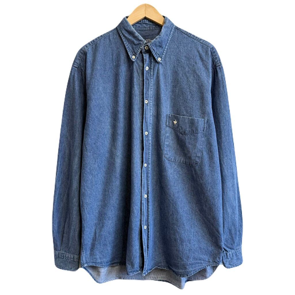 GOOSE & GANDER デニムシャツ ボタンダウンシャツ ポケット付き 長袖シャツ ワンポイントロゴ 刺繍 青 ブルー インディゴ サイズ52 No.J465