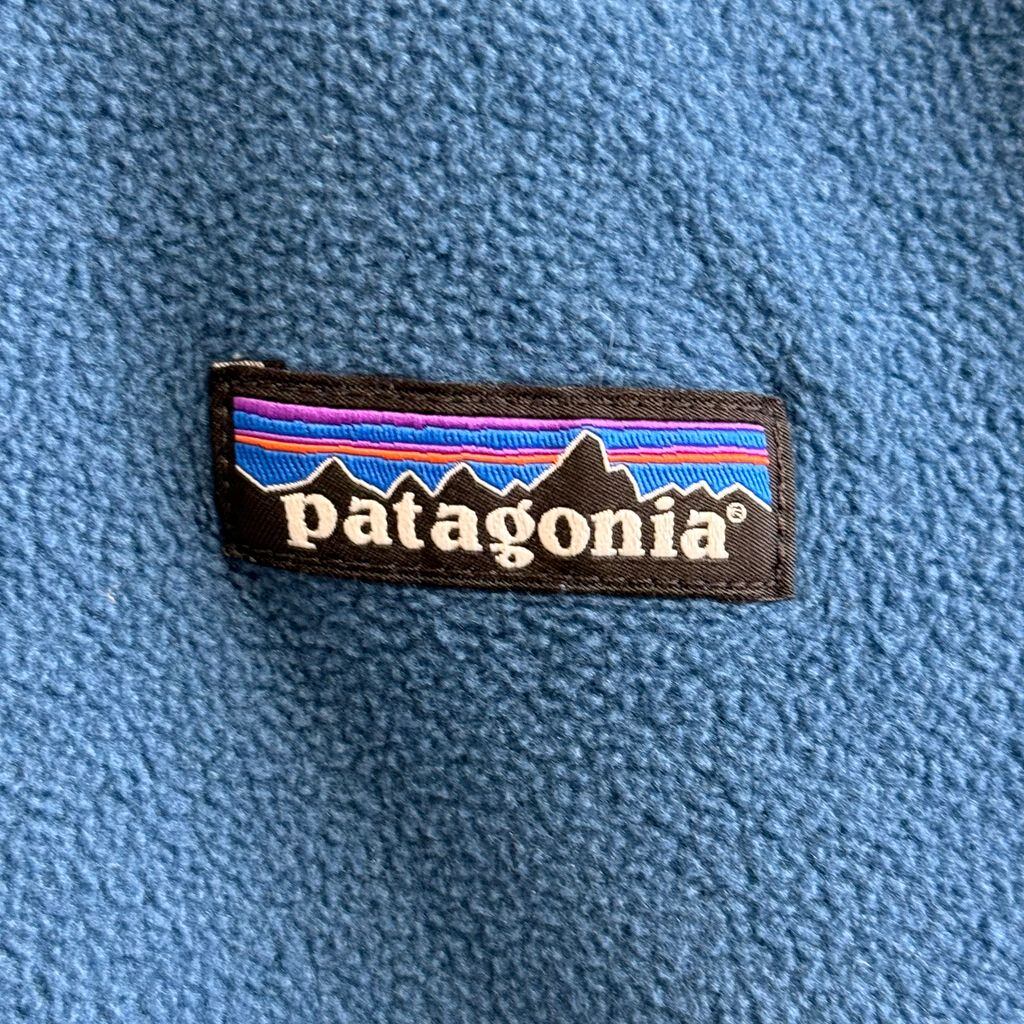 Patagonia パタゴニア プルオーバー フリース素材 フーディー パーカー ポケット付き ハーフボタン 紺×水色 Sサイズ No.J485