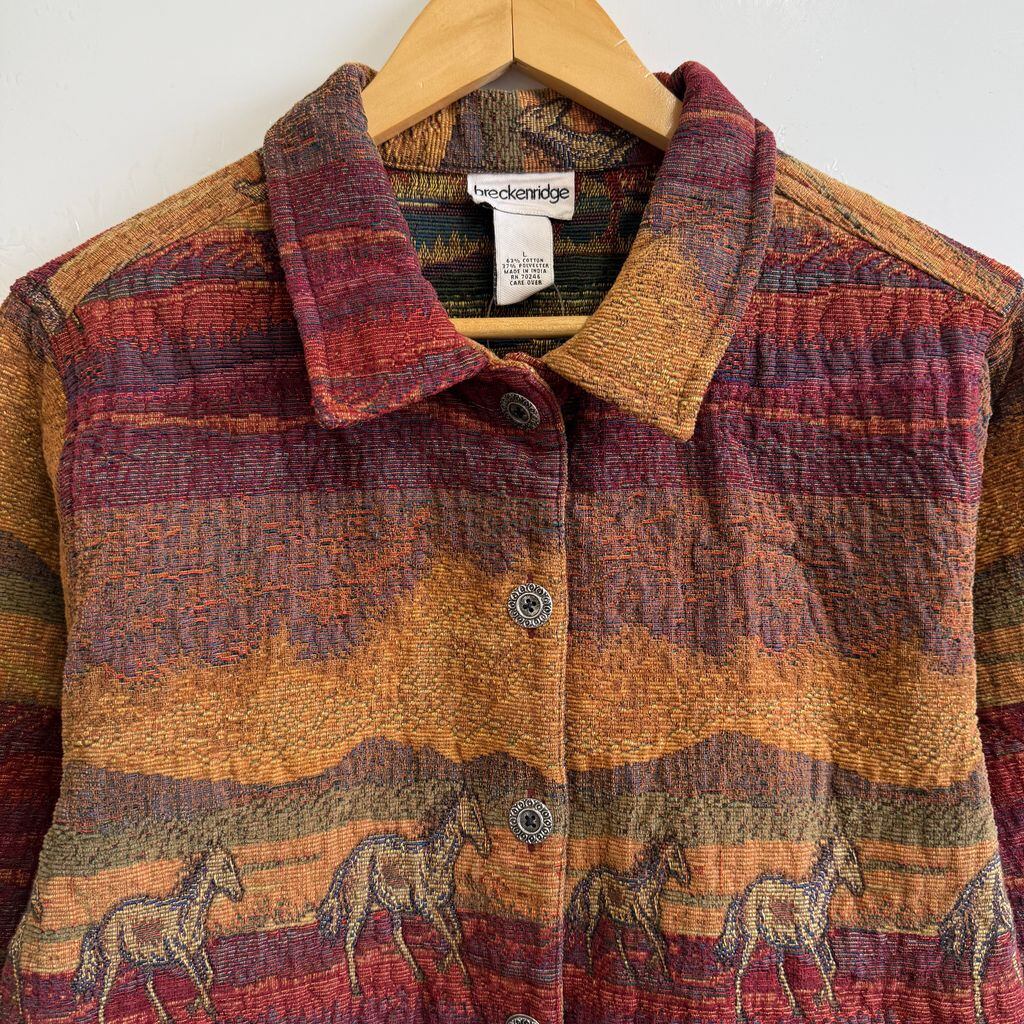 (レディース) インド製 breckenridge ゴブラン織り ジャケット 総柄 馬 柄ジャケット アニマル 多色 カラフル Lサイズ No.J496
