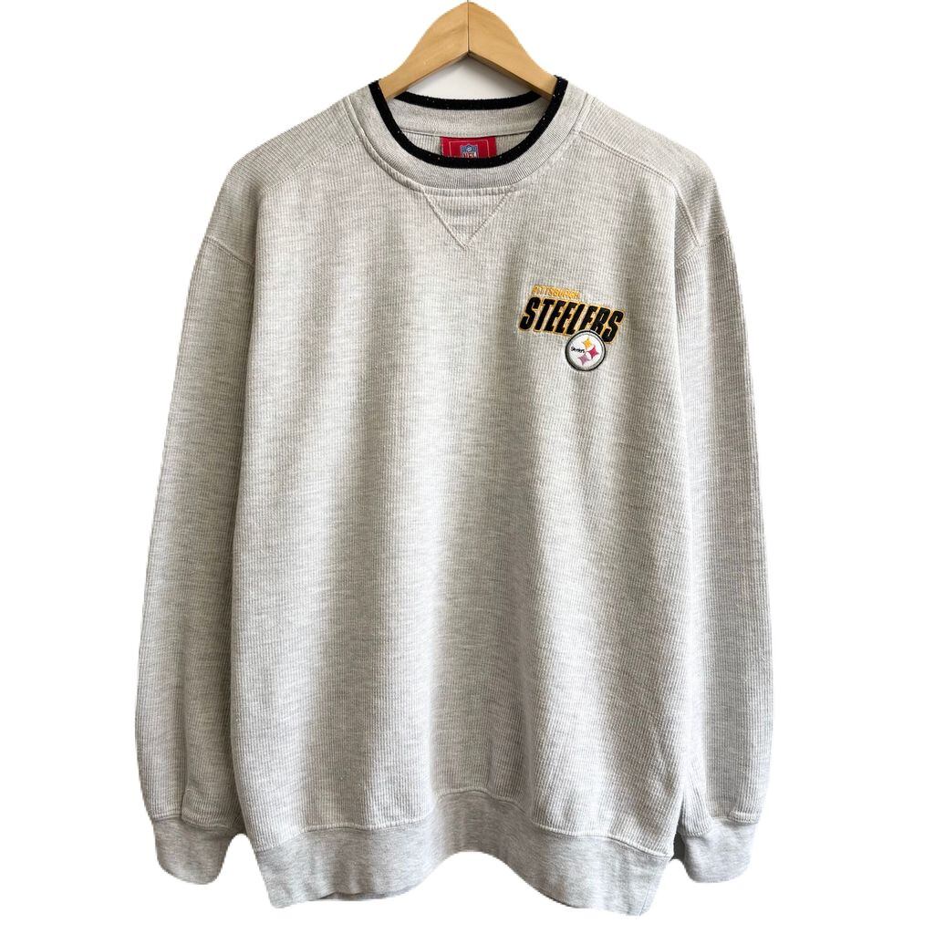 NFL トレーナー スウェット 裏起毛 STEELERS ワンポイントロゴ 刺繍 ライトグレー Lサイズ No.J554
