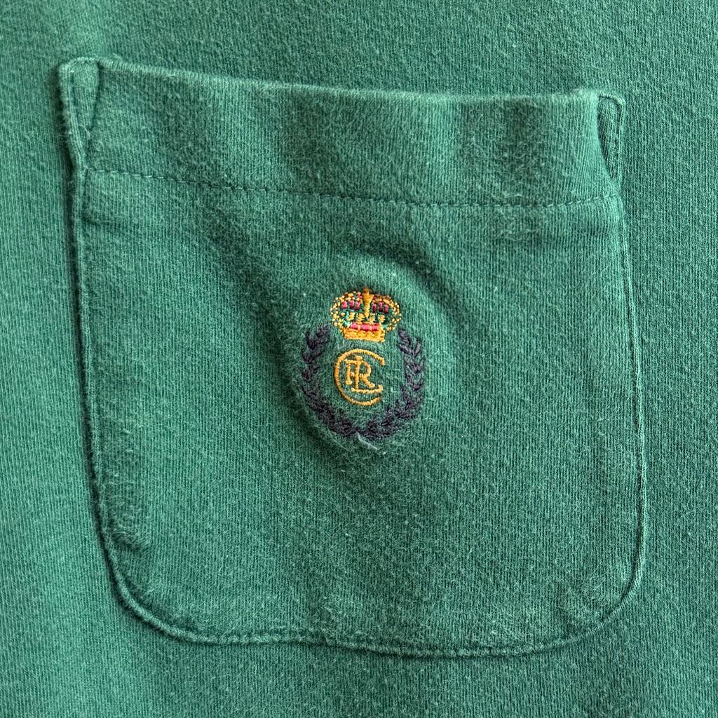 CHAPS チャップス Ralph Lauren ラルフローレン 長袖 ポロシャツ ハーフボタン プルオーバー トレーナー スウェット ワンポイントロゴ 刺繍 緑 グリーン Lサイズ No.J569