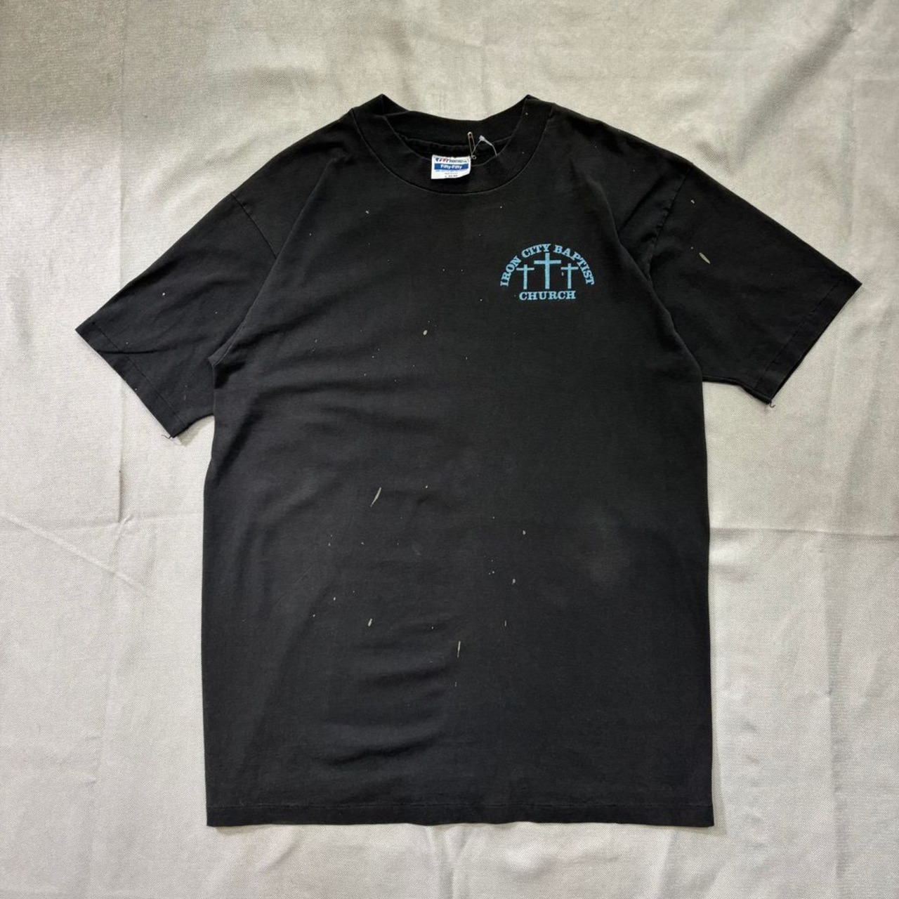 80s 90s Hanes Tシャツ 半袖 聖書 プリント フェード 黒 Lサイズ No.K067