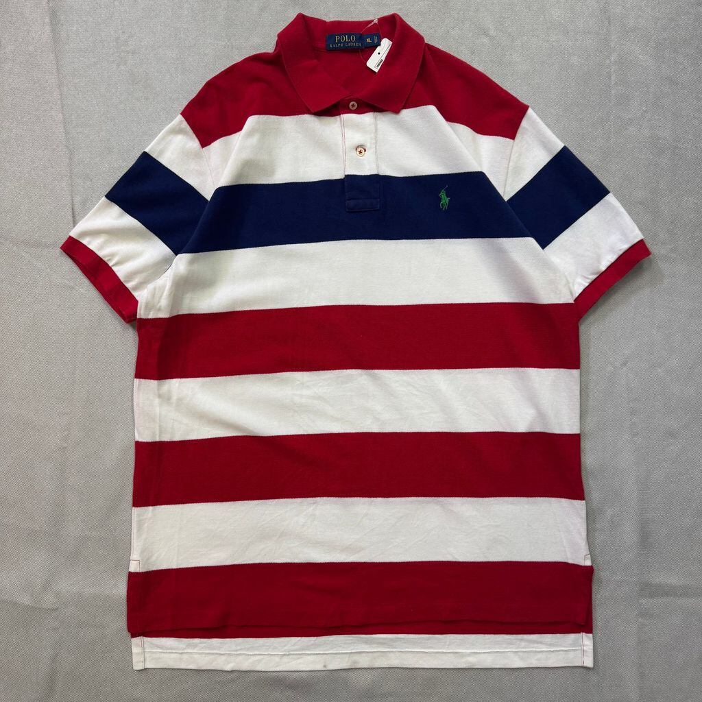 POLO RALPH LAUREN ポロ ラルフローレン ボーダー柄 半袖 ポロシャツ 赤×白×青 XLサイズ No.E396