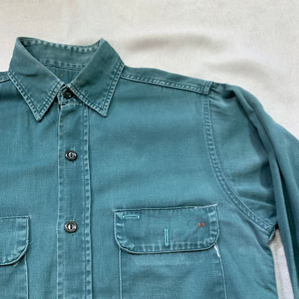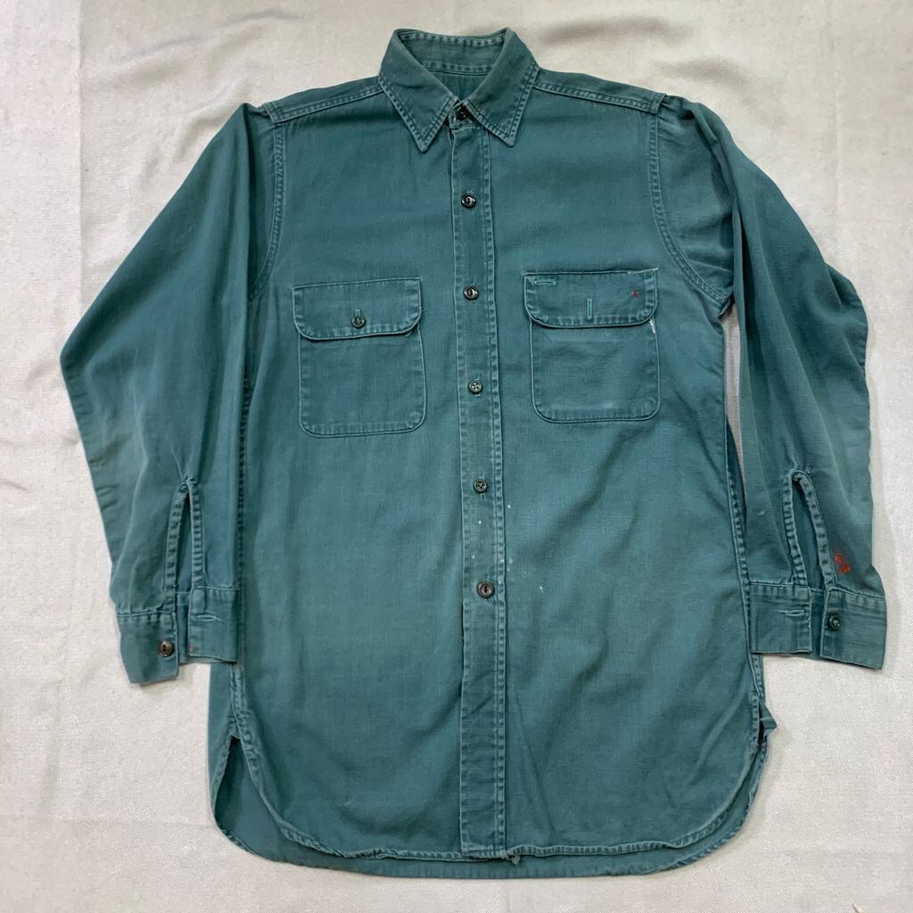 ~50’s ヴィンテージ ワークシャツ マチ付き コットンシャツ シャツ Work Shirt 長袖 ミリタリーグリーン green 緑 No I039