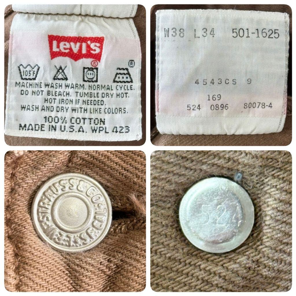 USA製 Levi's リーバイス 501 ボタンフライ ペインター デニムパンツ コットンパンツ 茶 ブラウン W38×34 No.J808