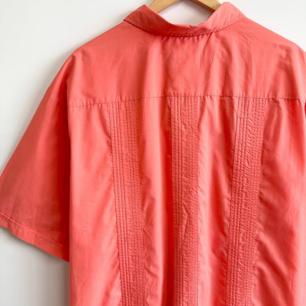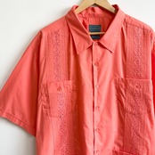 Tropicool キューバシャツ 刺繍 半袖シャツ ポケット付き サーモンピンク オレンジ 2XLサイズ No.J817
