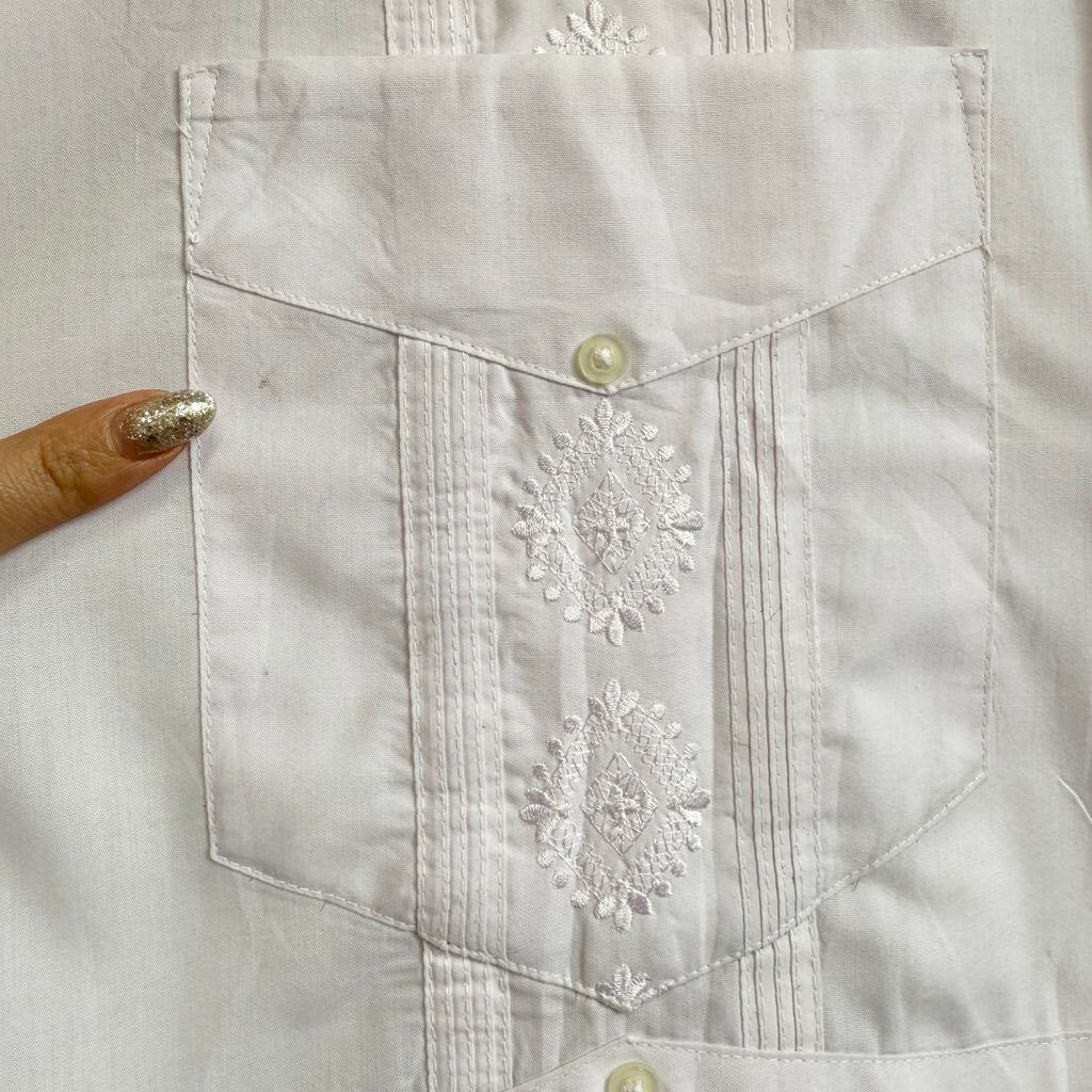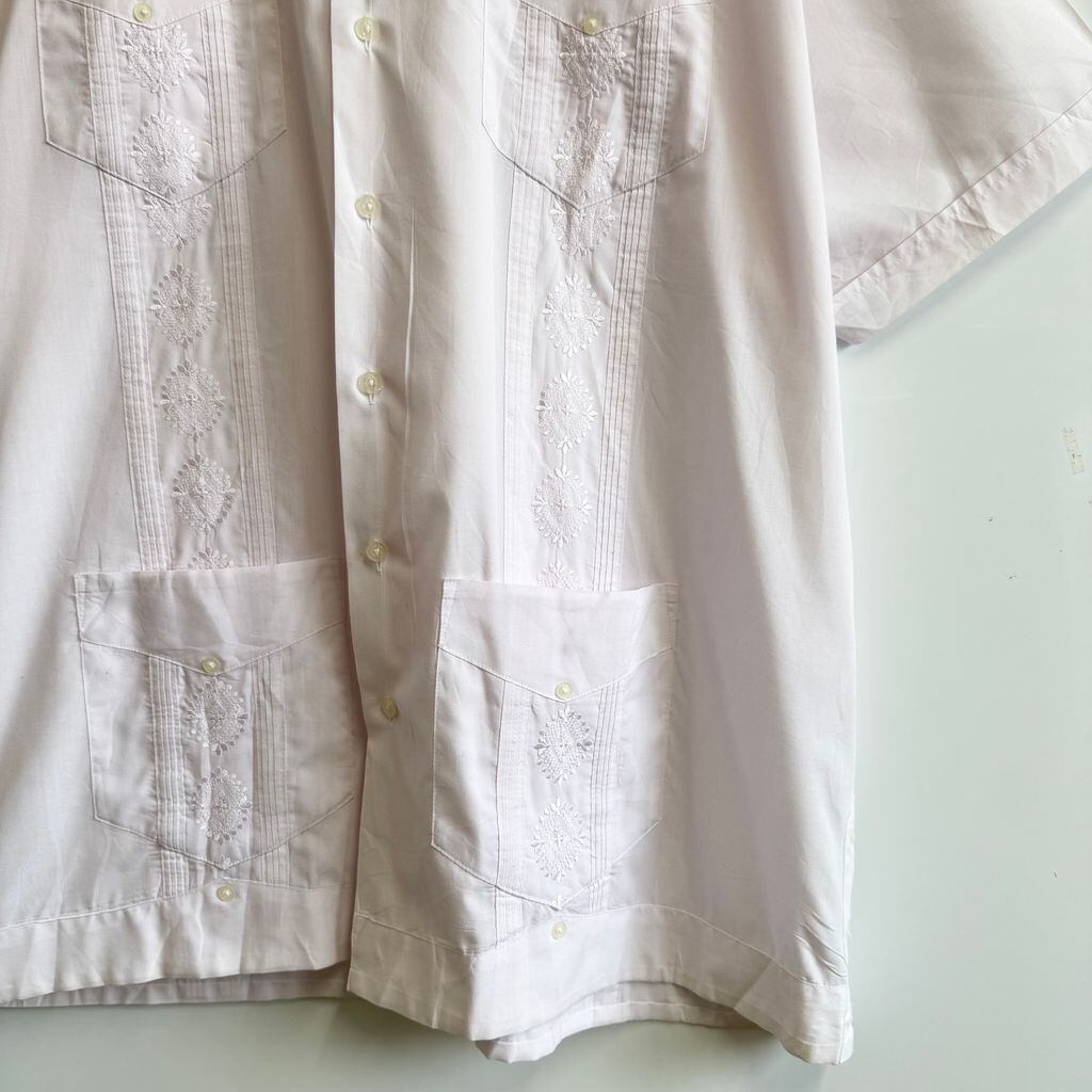 DAVID TAYLOR キューバシャツ オープンカラー 開襟シャツ 刺繍 半袖シャツ ポケット付き 白 XLサイズ No.J818