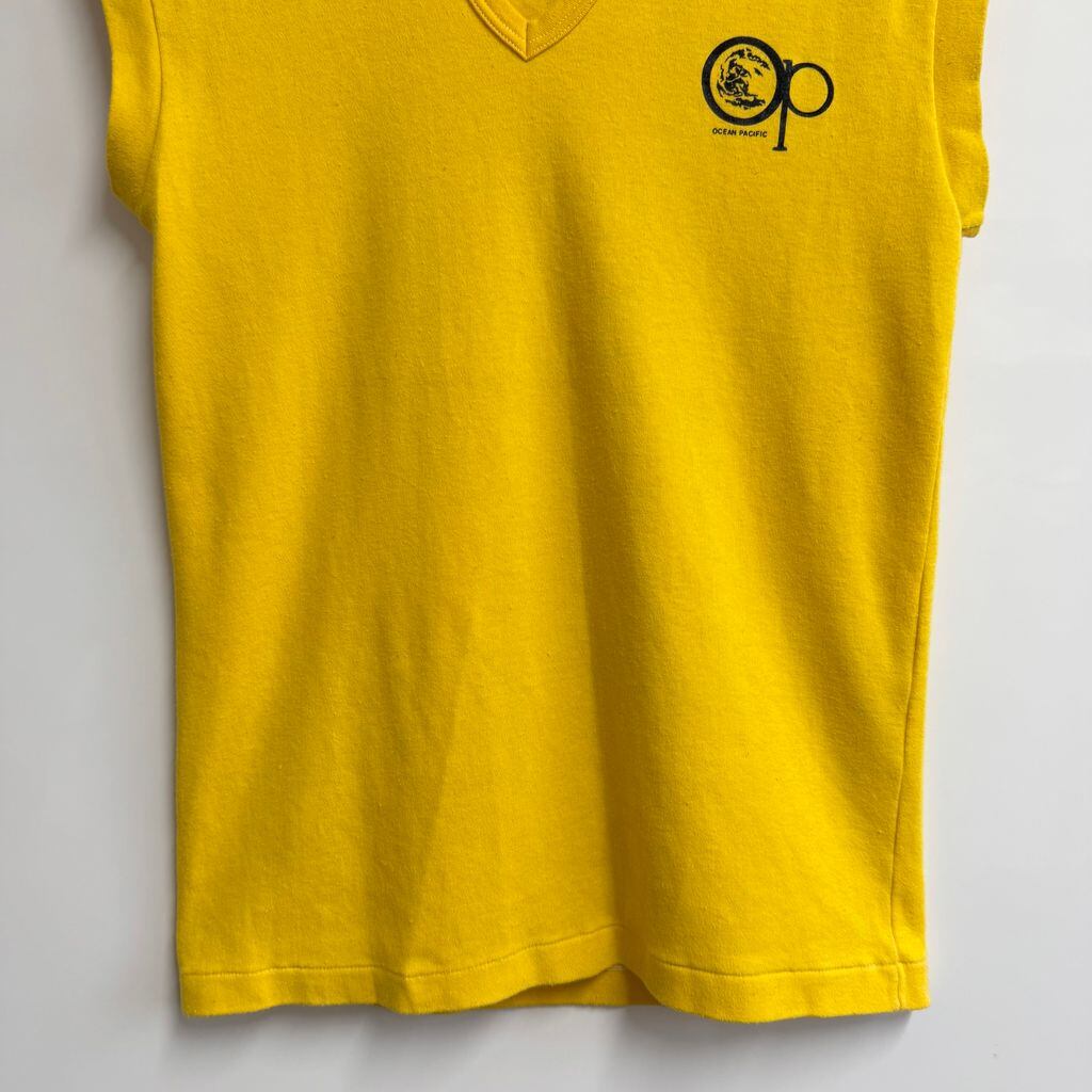ノースリーブTシャツ コットン Vネック OCEAN PACIFIC オーシャンパシフィック 2面プリント バックプリント サーファー 黄色 イエロー No.J875