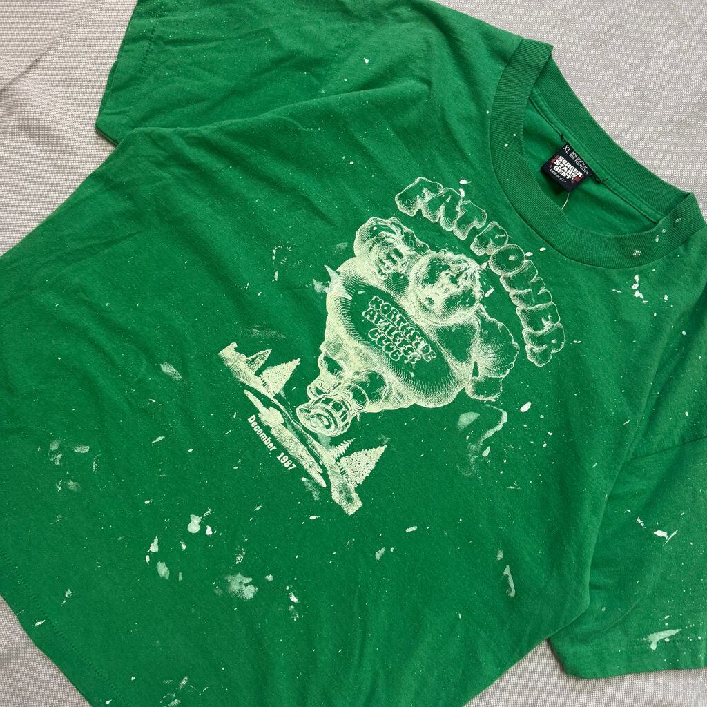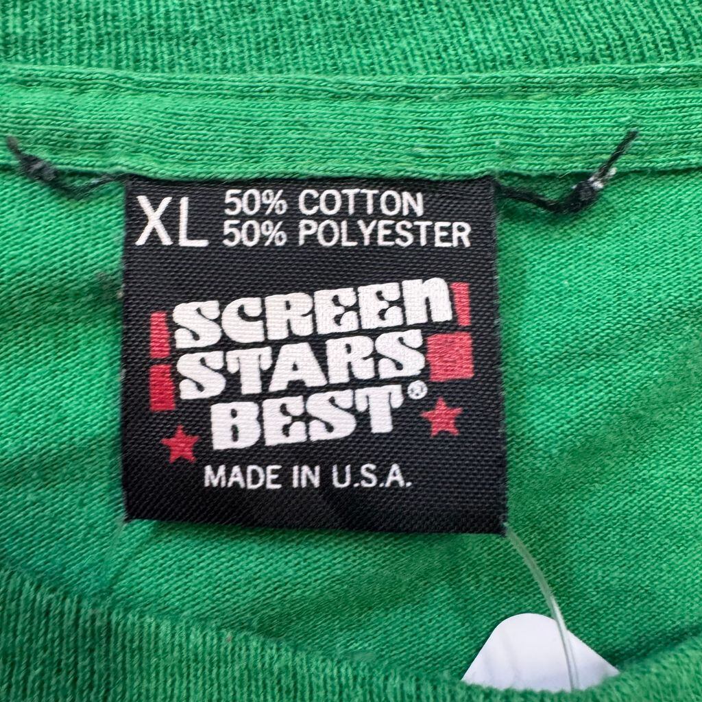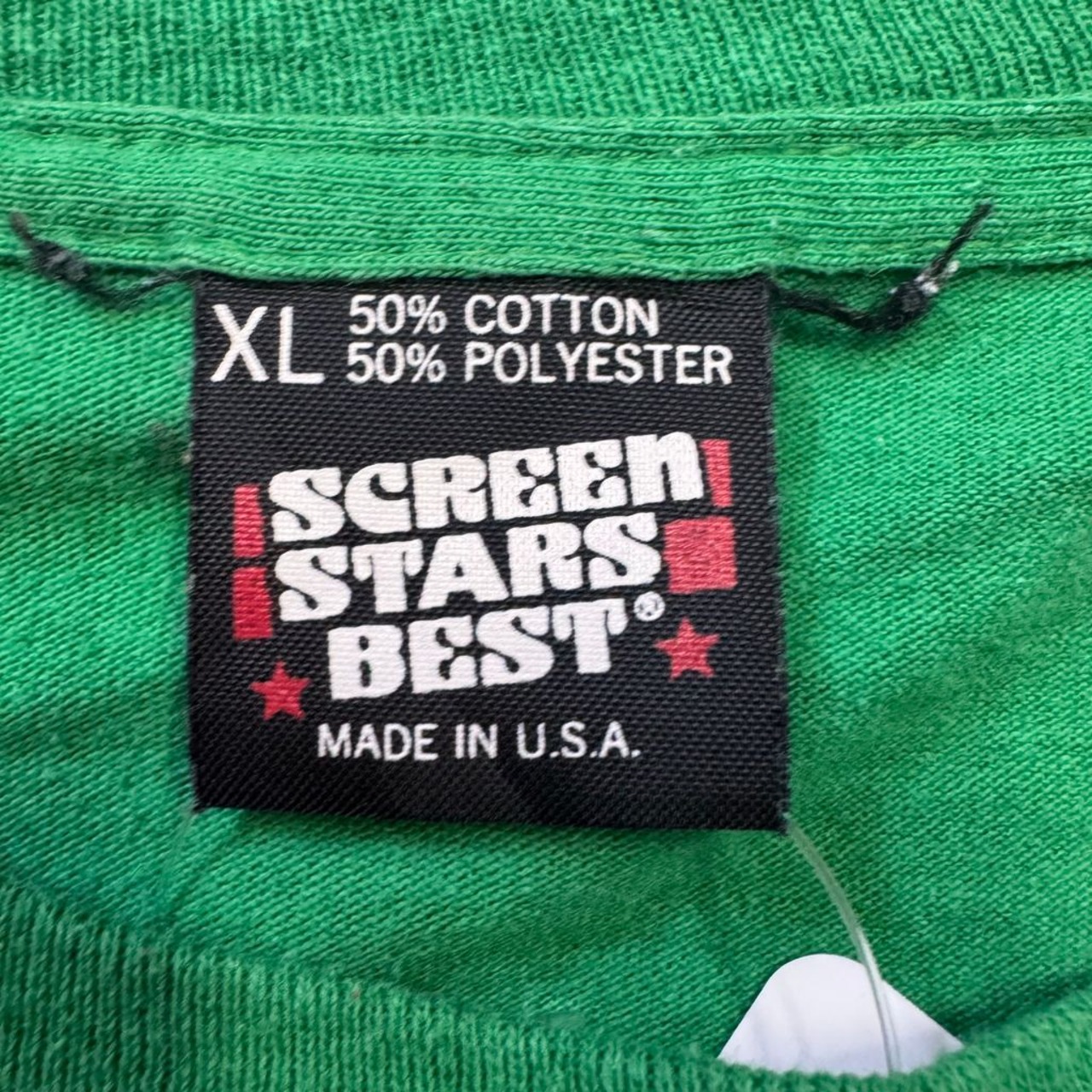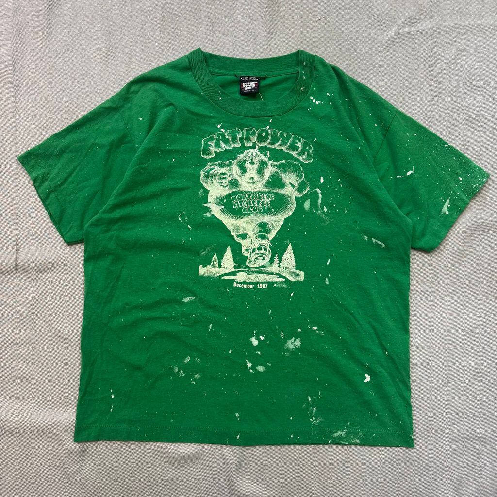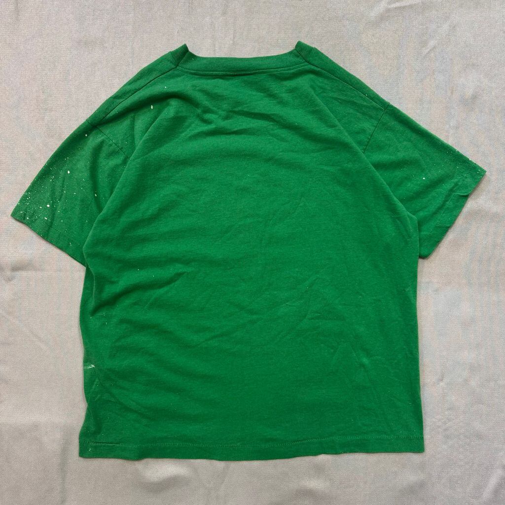 80s USA製 SCREEN STARS FAT POWER スクリーンスターズ ペイント ヴィンテージ Tシャツ 緑×白 XLサイズ No.E428