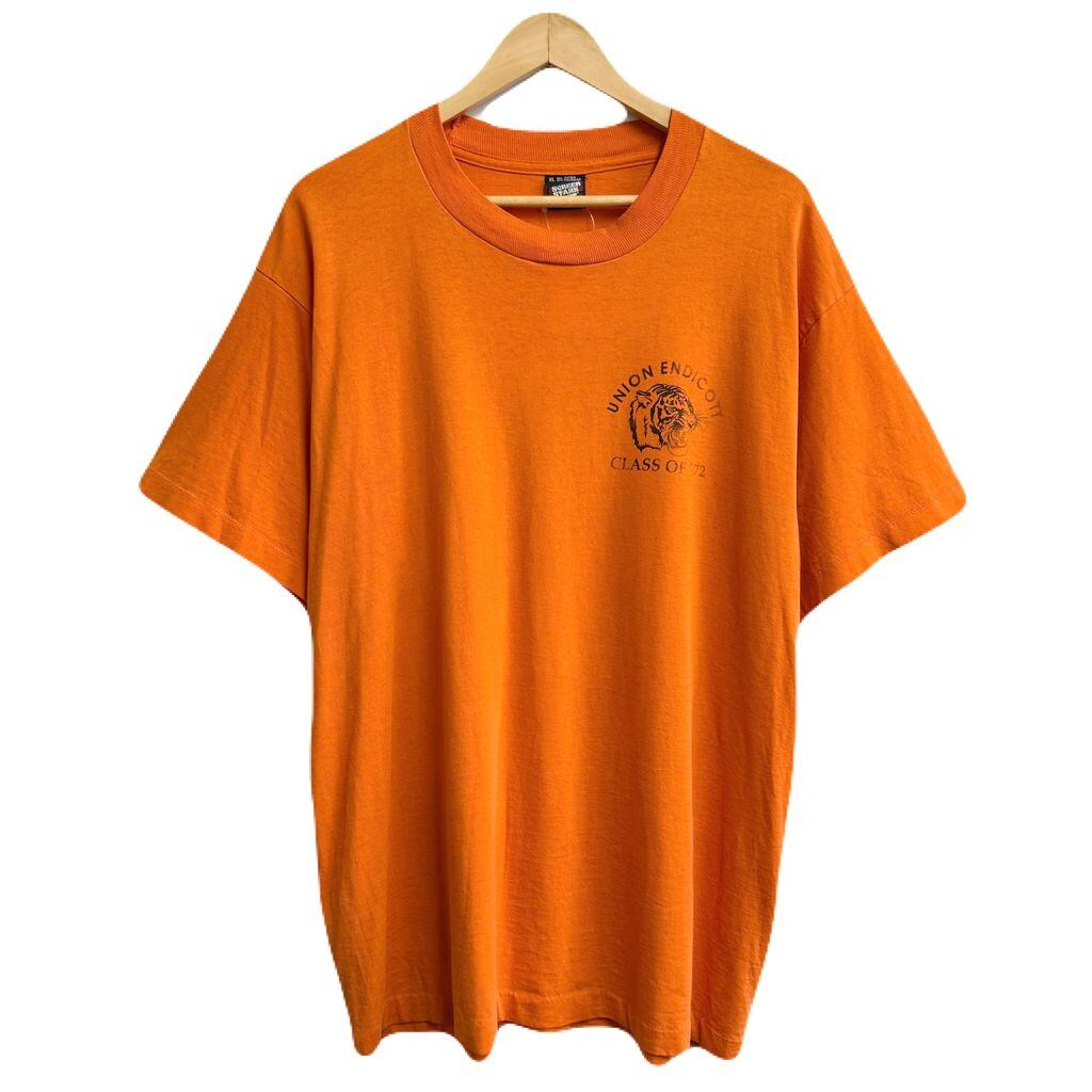 〜90's USA製 SCREEN STARS スクリーンスターズ 虎 トラ アニマルプリント ワンポイント シングルステッチ 半袖Tシャツ オレンジ XLサイズ No.Y030