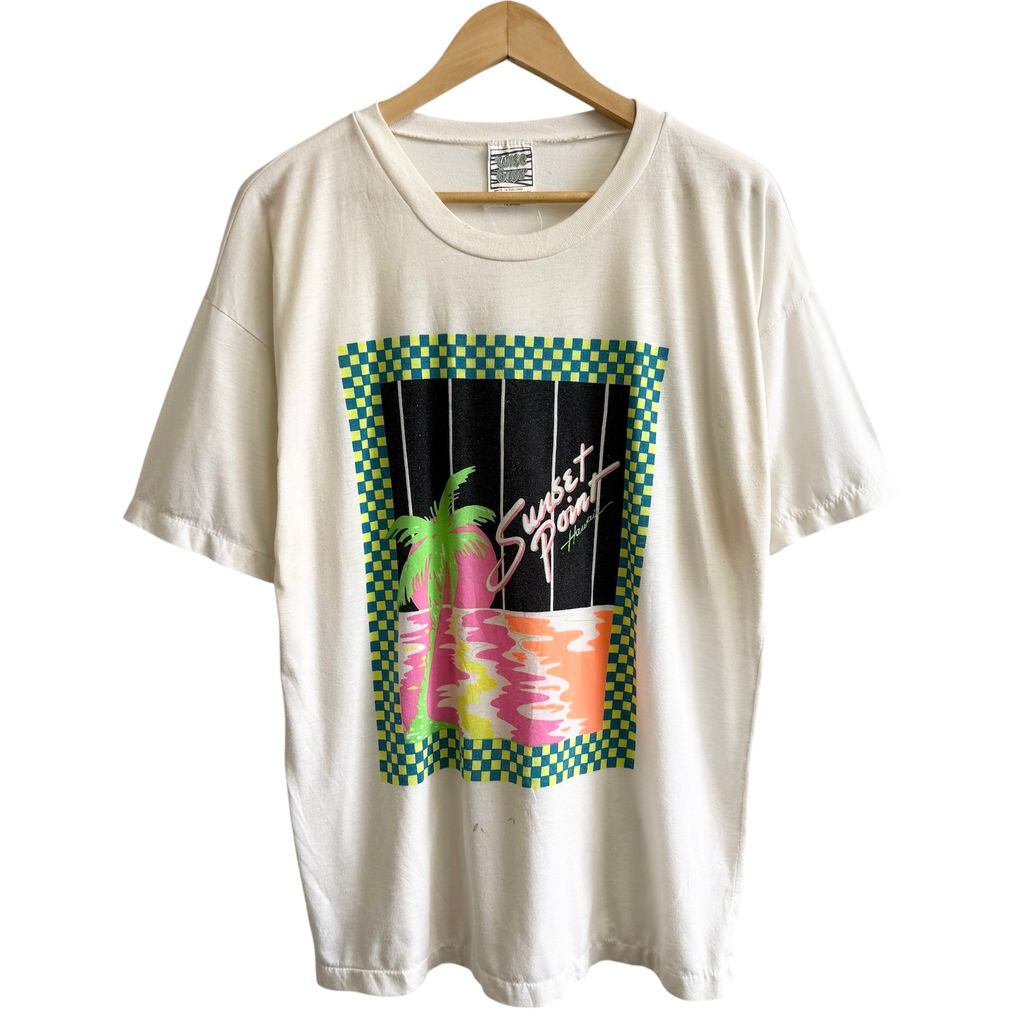 Wise Guys ヤシの木 海 sunset point Hawaii シングルステッチ 半袖Tシャツ 白×カラフル XLサイズ No.Y153