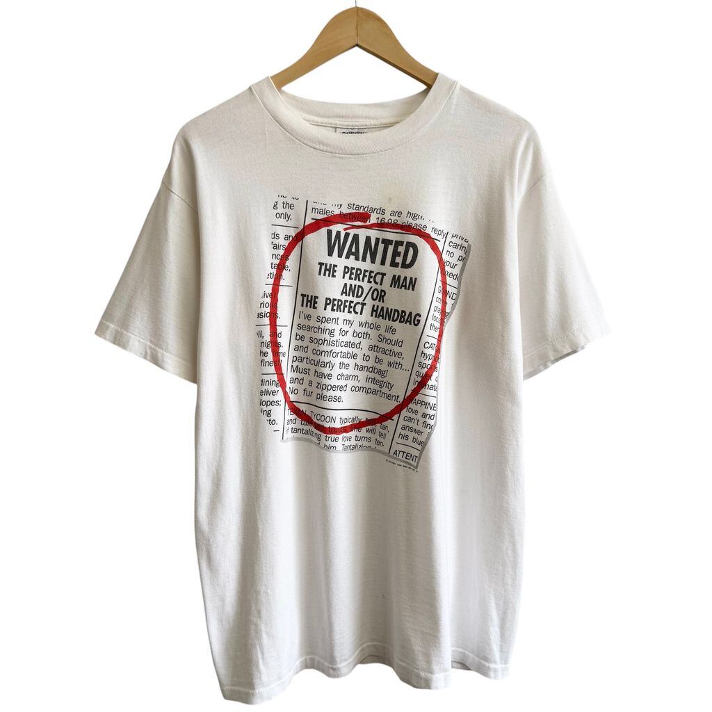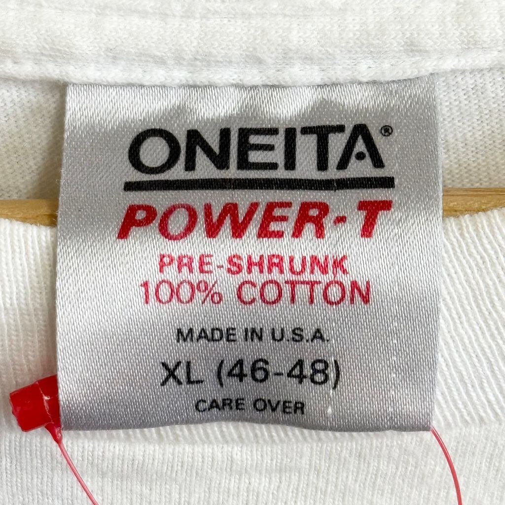 90's USA製 ONEITA オニータ フロントプリント WANTED メッセージプリント シングルステッチ 半袖Tシャツ 白 XLサイズ No.Y156