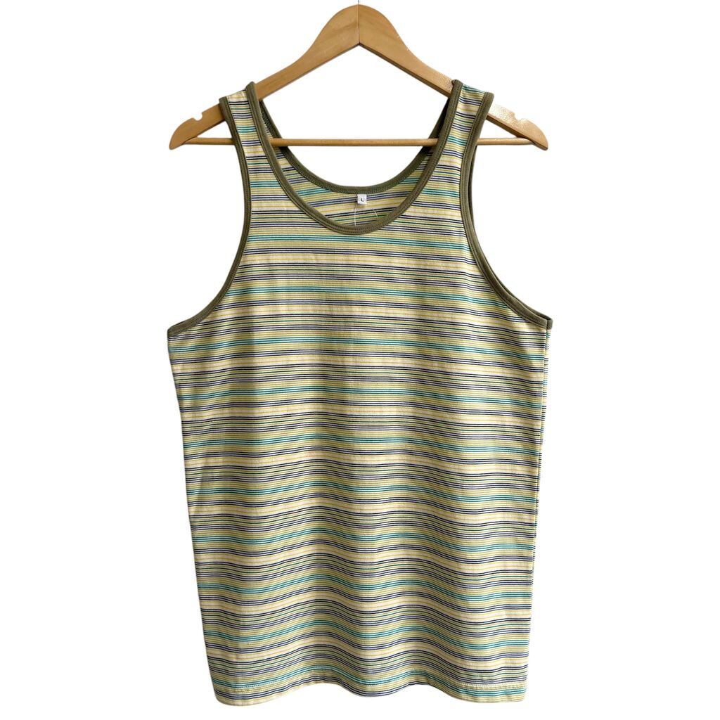 タンクトップ ボーダー 総柄 カラフル カーキ×多色 Lサイズ No.Y197