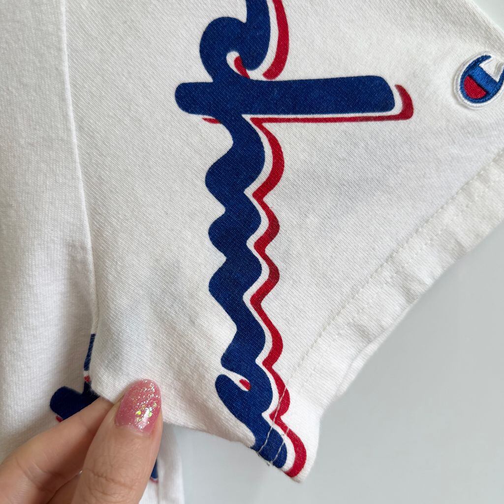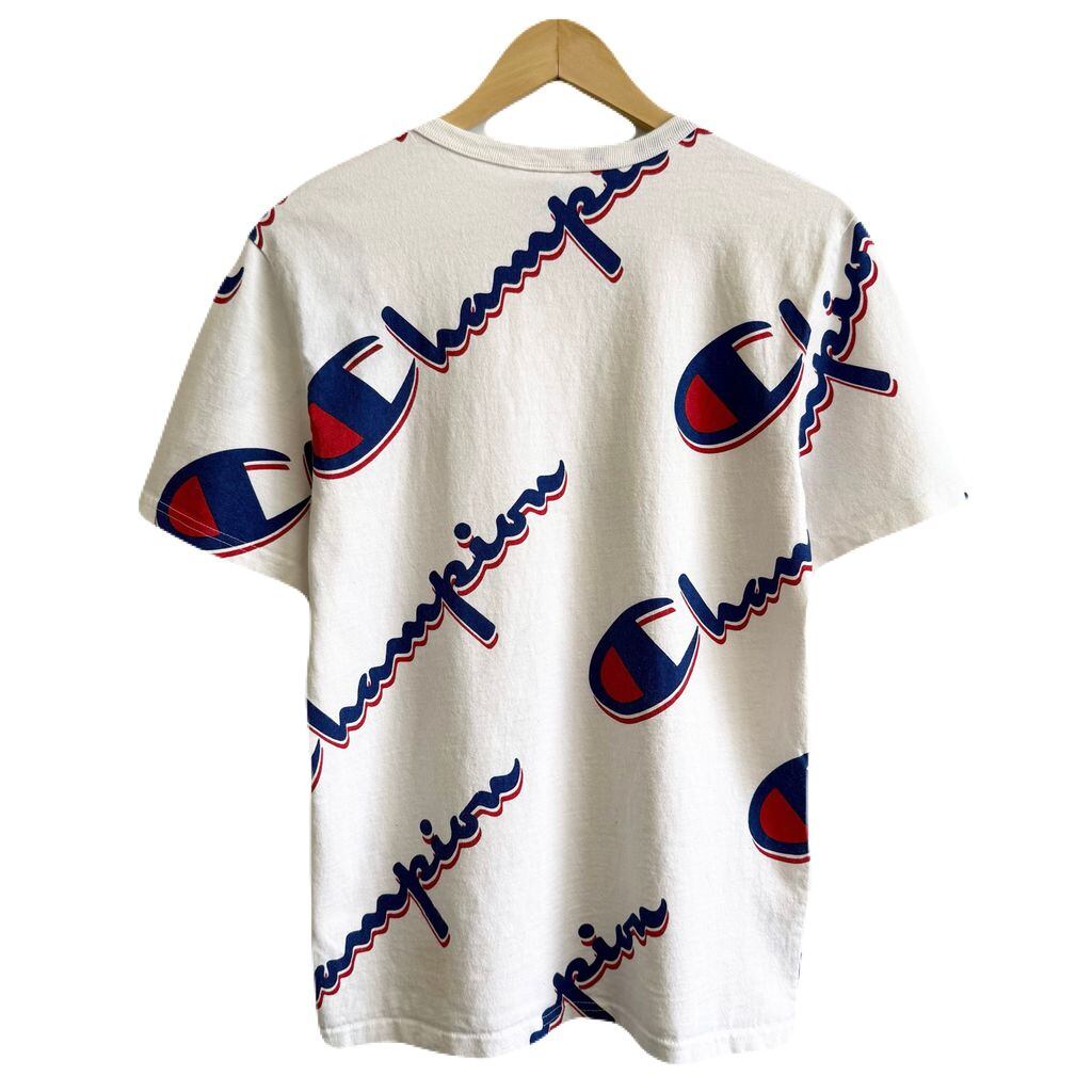 Champion チャンピオン 総柄 ビッグロゴ ロゴプリント ワンポイントロゴ 刺繍 半袖Tシャツ 白 SサイズNo.Y201