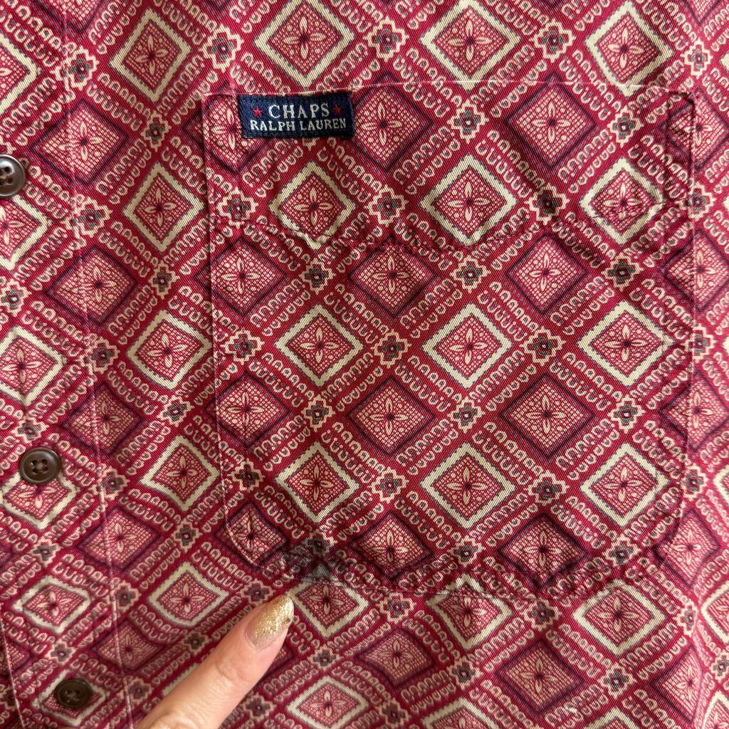 CHAPS チャップス RALPH LAUREN ラルフローレン ボタンダウンシャツ 総柄 柄シャツ デザインシャツ 長袖シャツ コットンシャツ 胸ポケット付き ワインレッド×多色 XLサイズ No.Y371