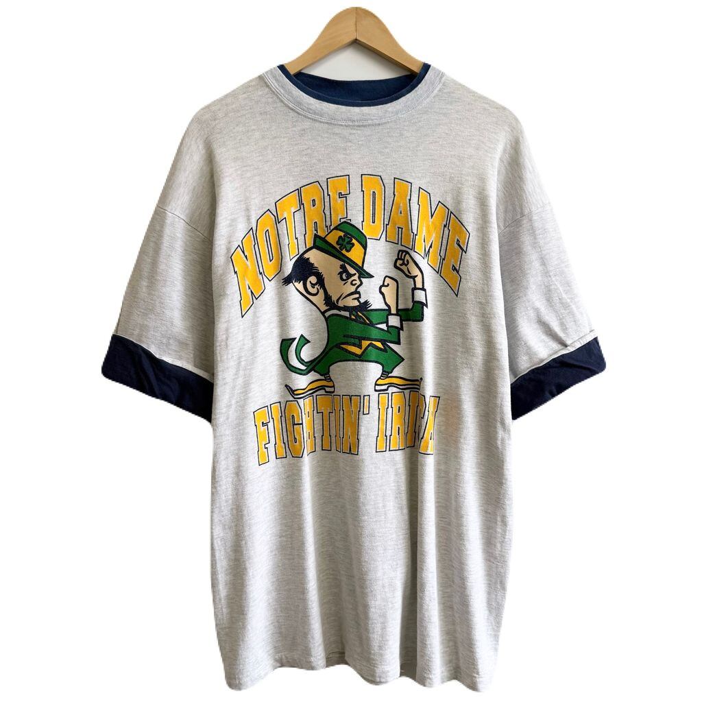 USA製 Collegiate Pacific ノートルダム NOTREDAME FIGHTIN' IRISH 半袖Tシャツ ライトグレー×紺 XLサイズ No.Y402