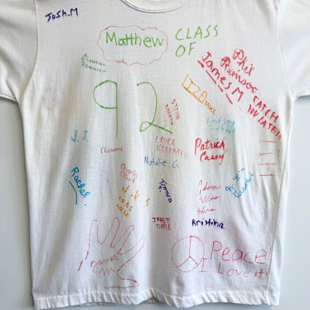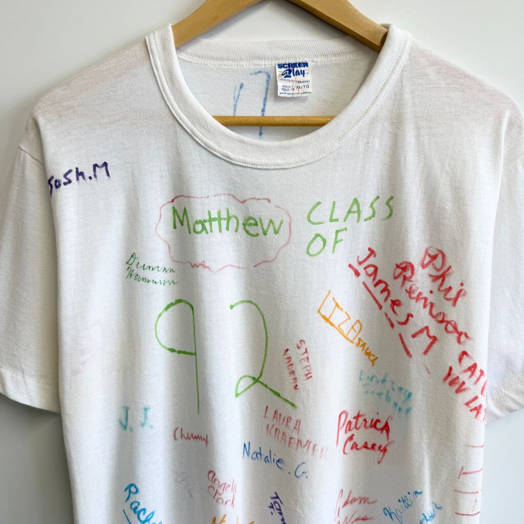 SCREEN Play 寄せ書き メッセージ 手書き メモリアル シングルステッチ 半袖Tシャツ 白×カラフル XLサイズ No.Y417