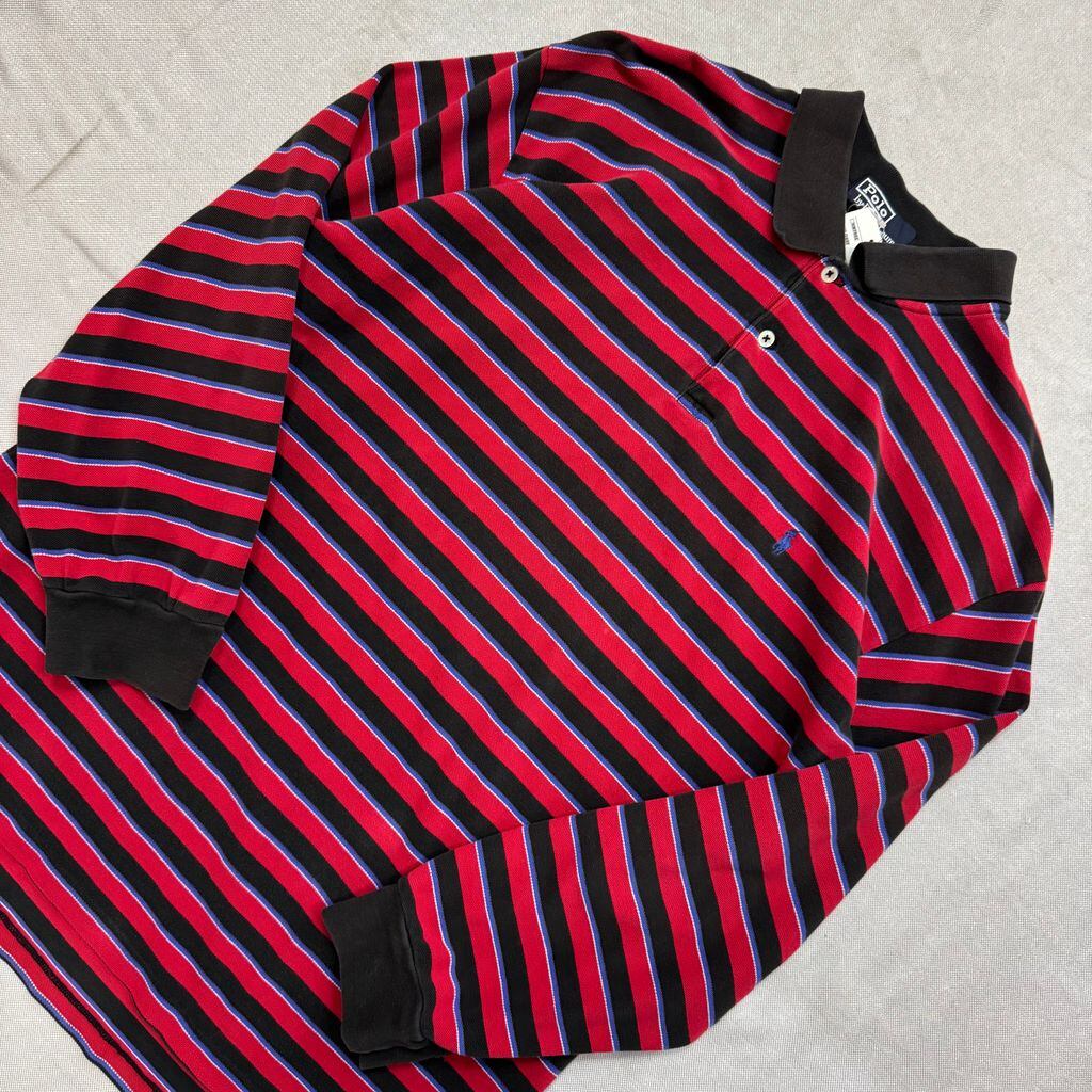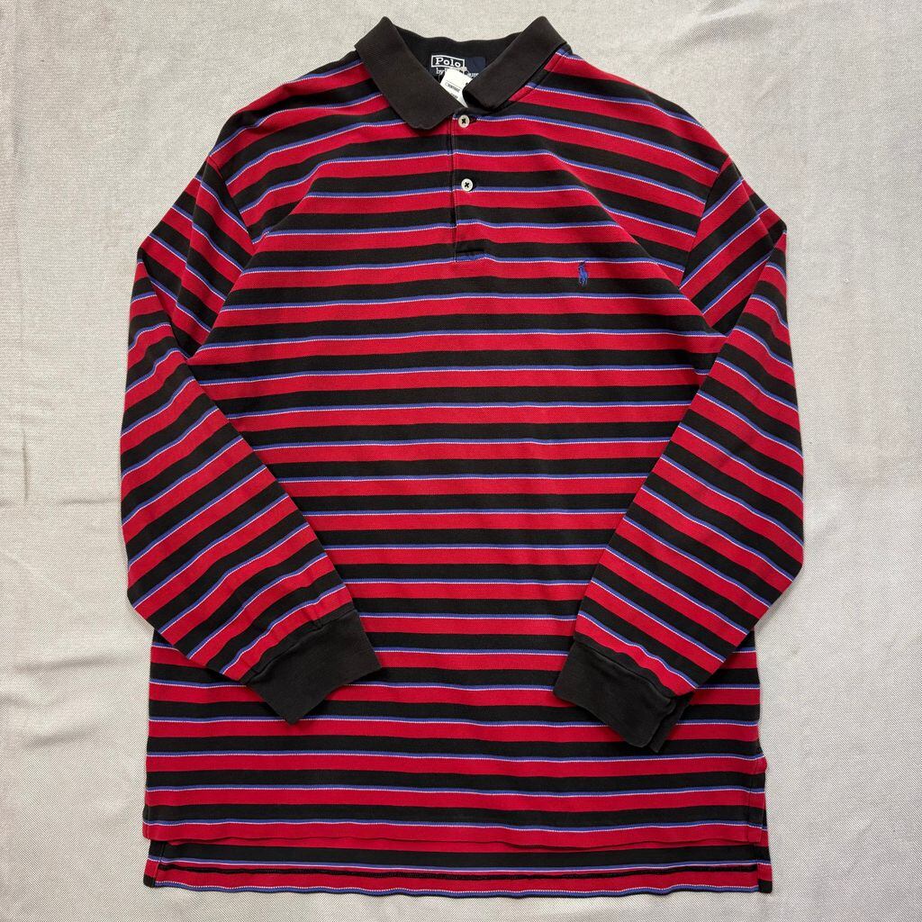 Polo by Ralph Lauren ポロ ラルフローレン ボーダー柄 ポロシャツ 長袖 紺×赤×青 XLサイズ No.E474