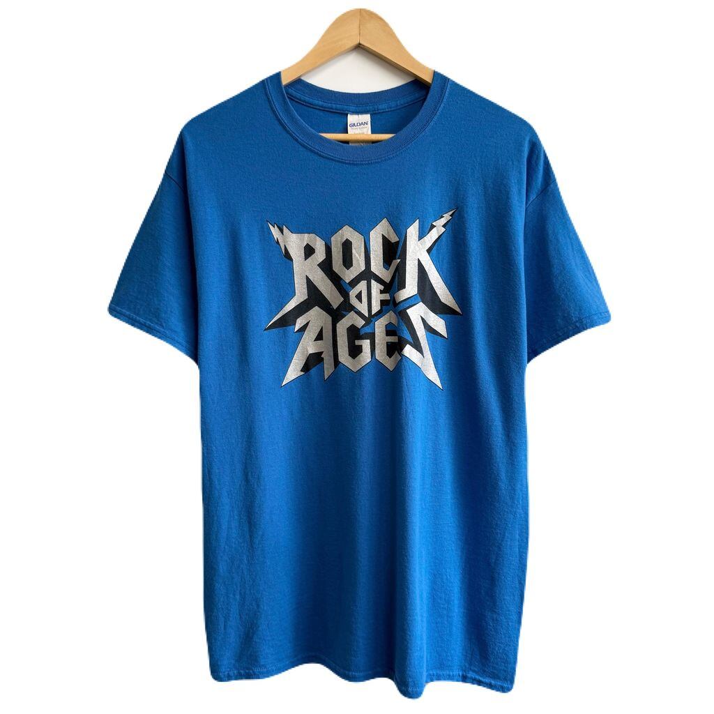 GILDAN ギルダン ROCK of AGES 両面プリント 半袖Tシャツ 青 ブルー Lサイズ No.Y489