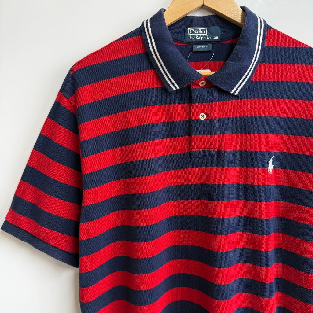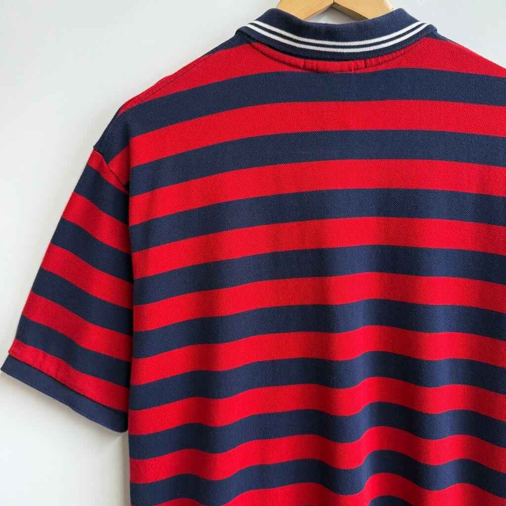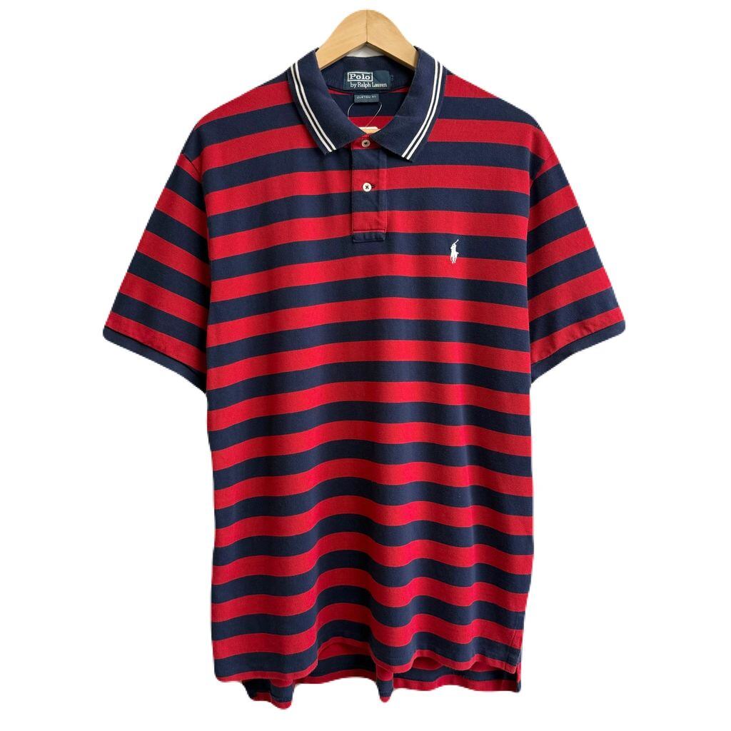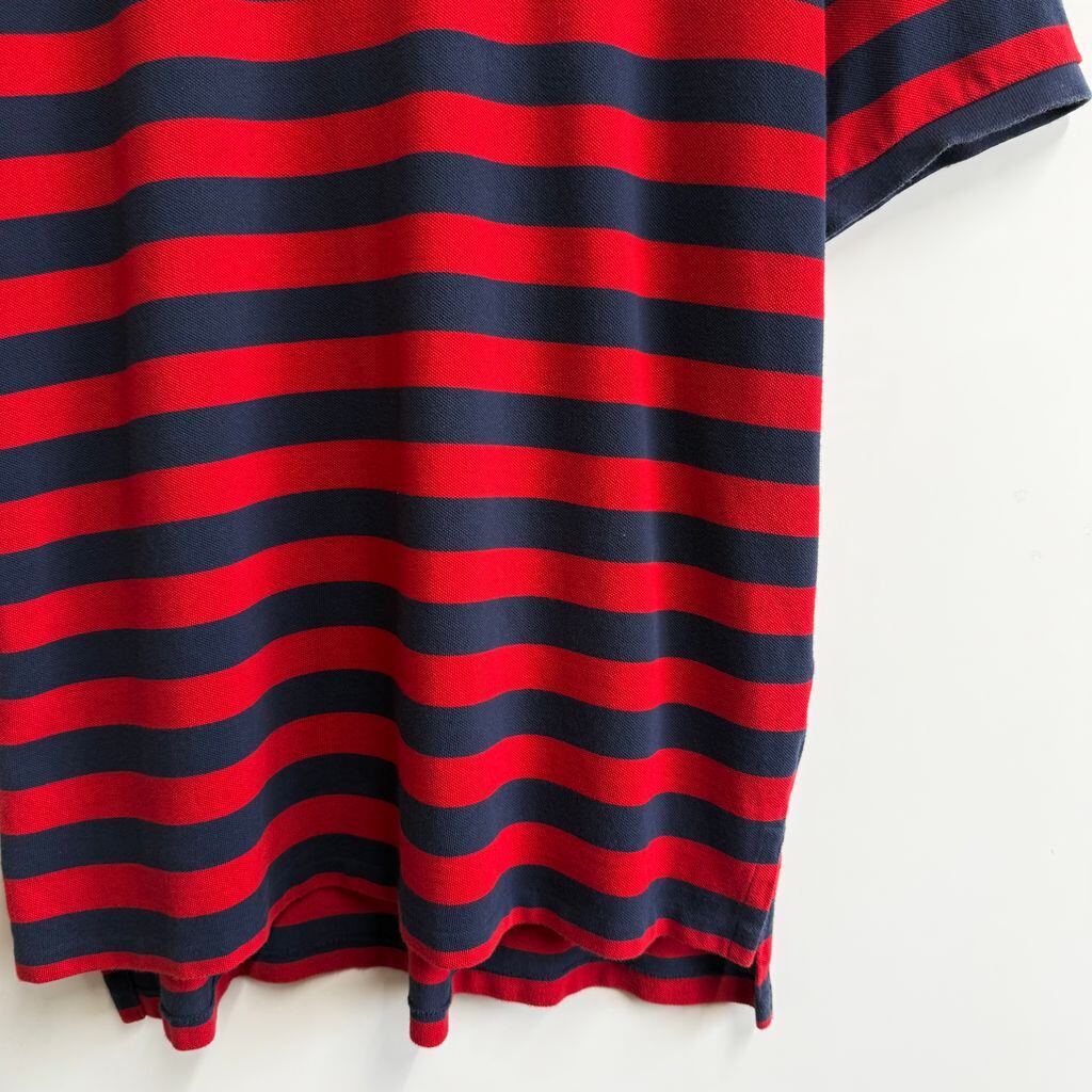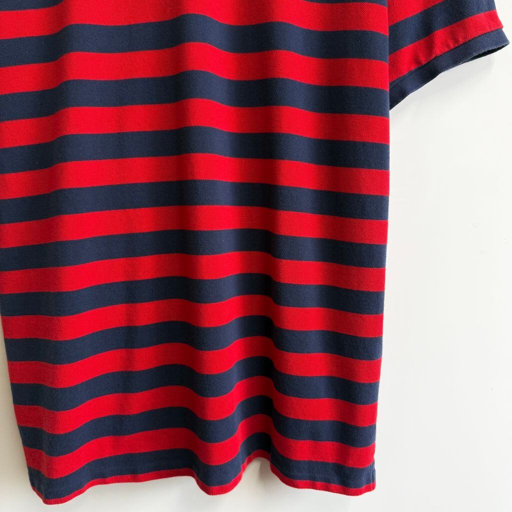 POLO RALPH LAUREN ポロ ラルフローレン ポロシャツ 半袖 ボーダー ワンポイントロゴ 刺繍 紺×赤×白 No.Y494