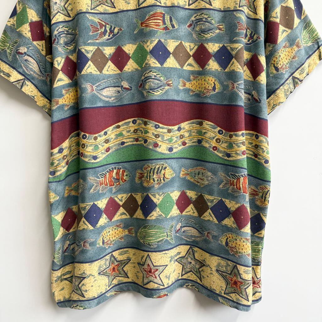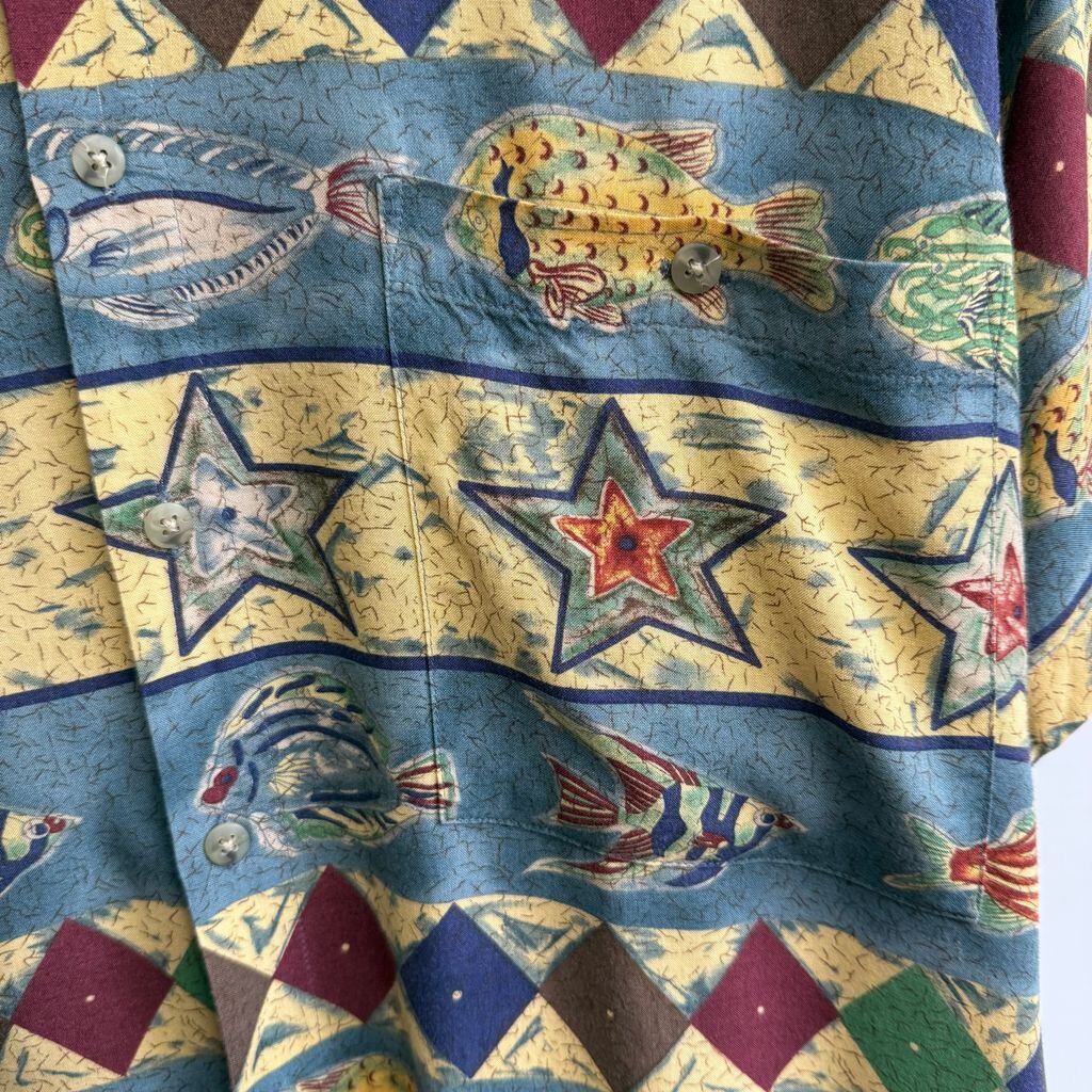 #古着 #古着男子 #古着女子 #ヴィンテージ #ビンテージ #used #vintage #総柄 #柄シャツ #デザインシャツ #半袖シャツ # レーヨンシャツ #魚 #ヒトデ #星