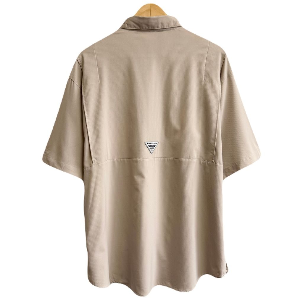 Columbia コロンビア PFG アウトドアシャツ フィッシングシャツ ポリシャツ 半袖シャツ 無地 ベージュ Lサイズ No.Y563