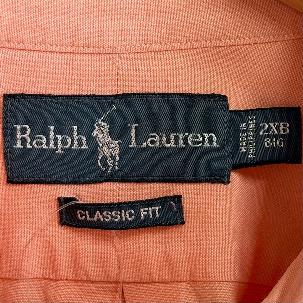 Ralph Lauren ラルフローレン CLASSIC FIT ボタンダウンシャツ コットンシャツ 半袖シャツ ワンポイントロゴ 刺繍 サーモンピンク 2XBサイズ No.Y584