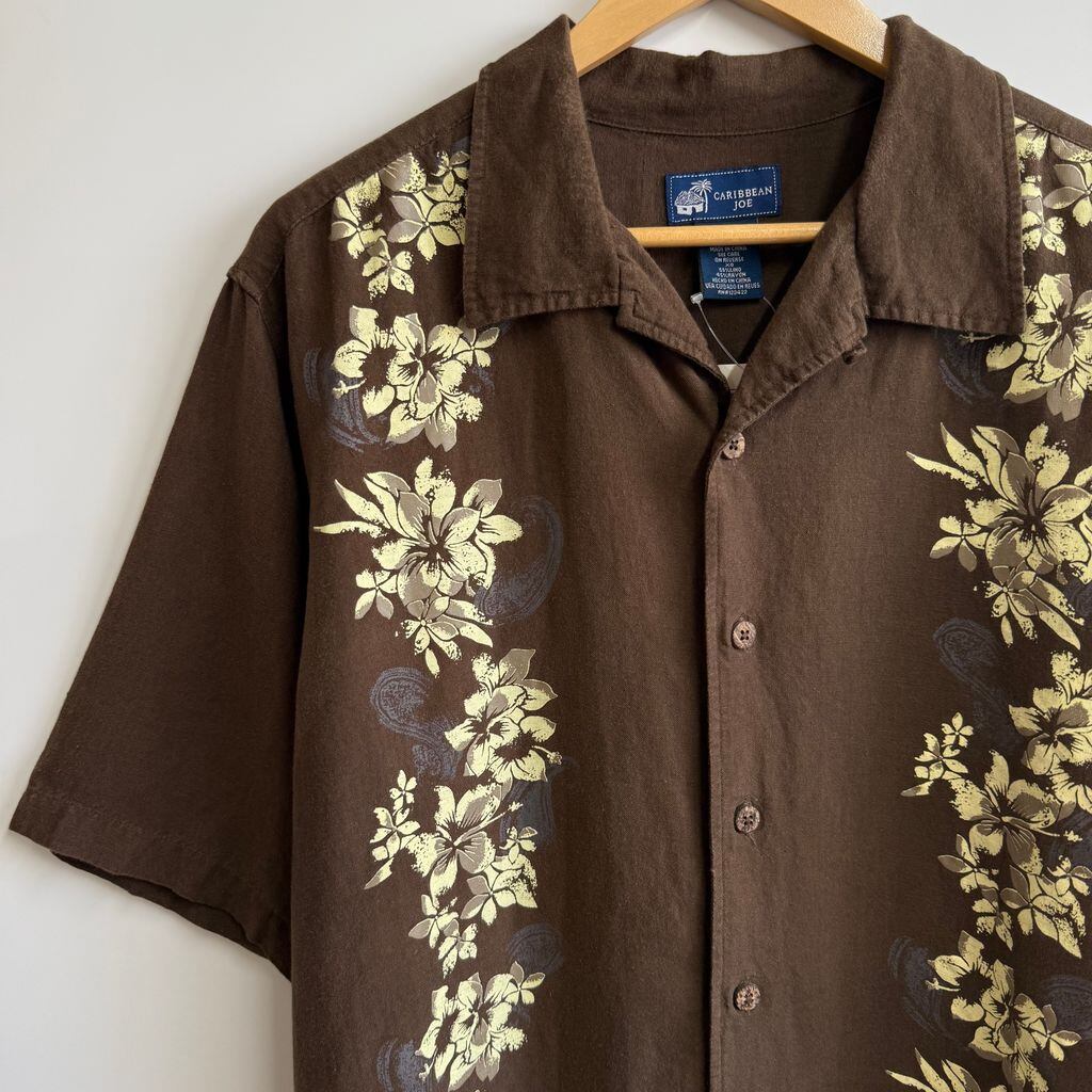 CARIBBEAN JOE ハイビスカス オープンカラー 開襟シャツ アロハシャツ 半袖シャツ 茶 ブラウン XLサイズ No.Y586