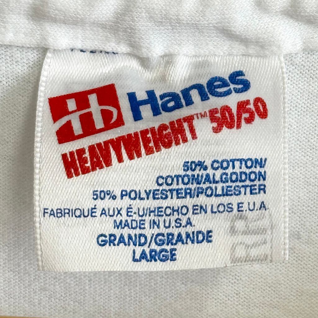 USA製 Hanes ヘインズ ヤシの木 熱帯魚 fish 太陽 空 POP ポップ カラフル Hawaii ハワイ シングルステッチ 半袖Tシャツ 白 Lサイズ No.Y595