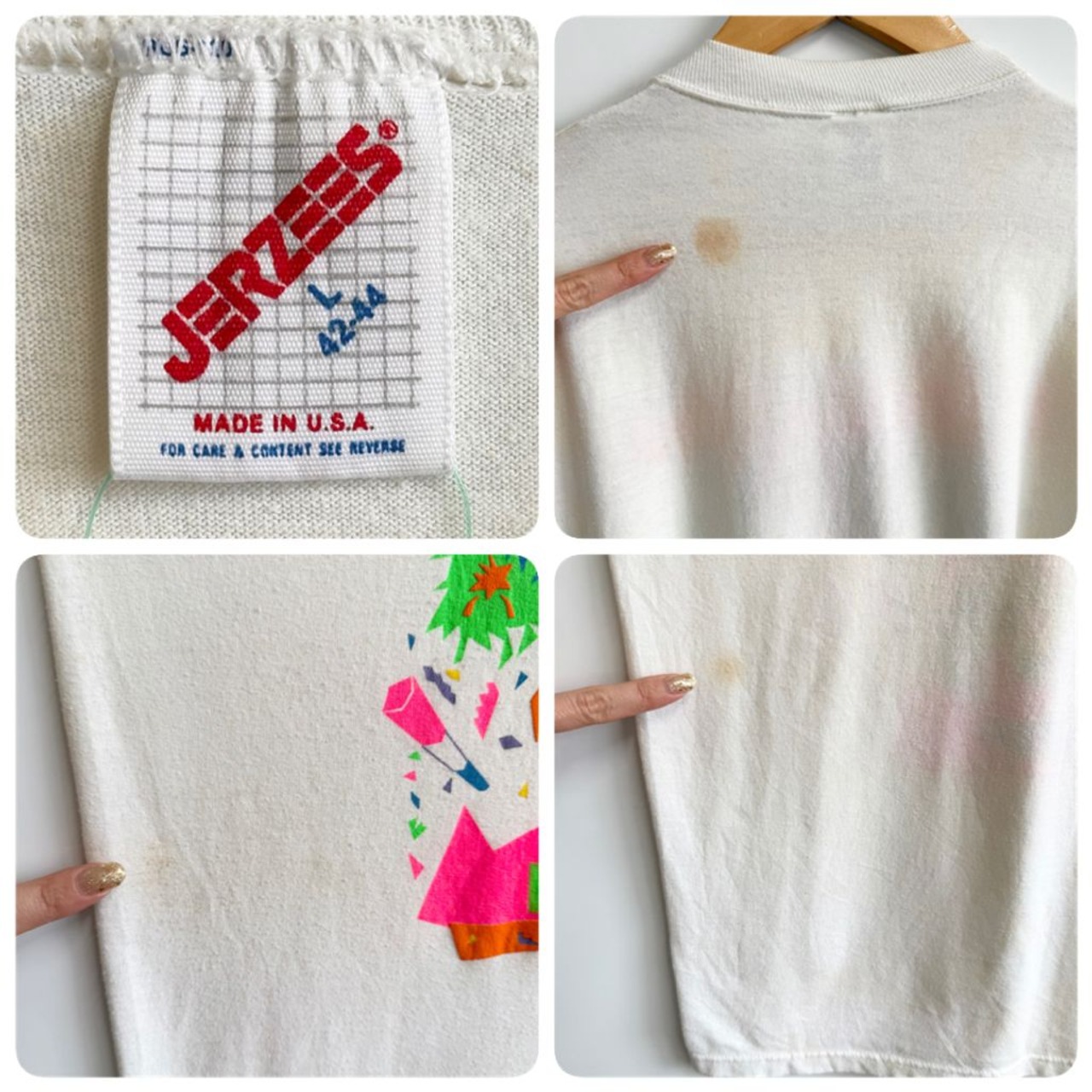 USA製 JERZEES ジャージーズ NCA チアリーダー cheerleader POP ポップ カラフル レトロ シングルステッチ 半袖Tシャツ 白 Lサイズ No.Y596
