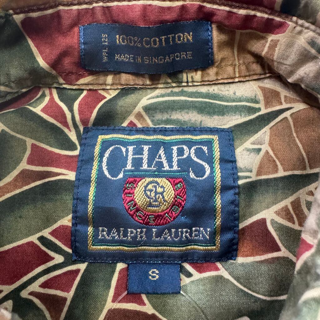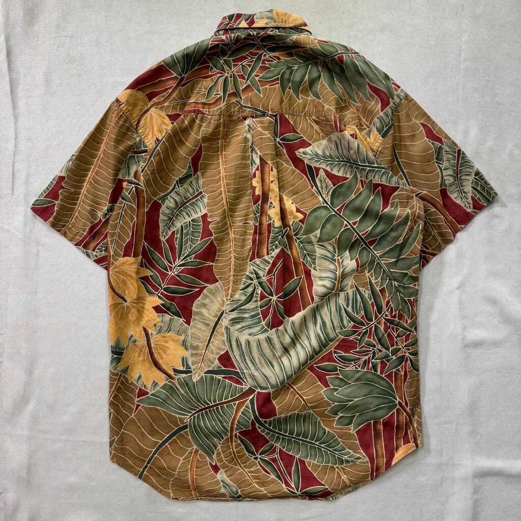 CHAPS RALPH LAUREN チャップス ラルフローレン ボタンダウン ポケット付き ボタニカル 半袖シャツ 茶×赤×緑 Sサイズ No.E494