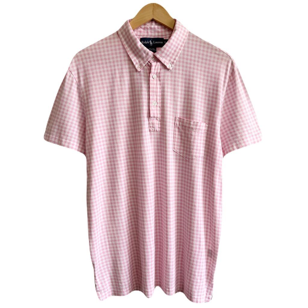 Ralph Lauren ラルフローレン ギンガムチェック ボタンダウンシャツ ポロシャツ 半袖 胸ポケット付き ピンク×白 Lサイズ No.Y611
