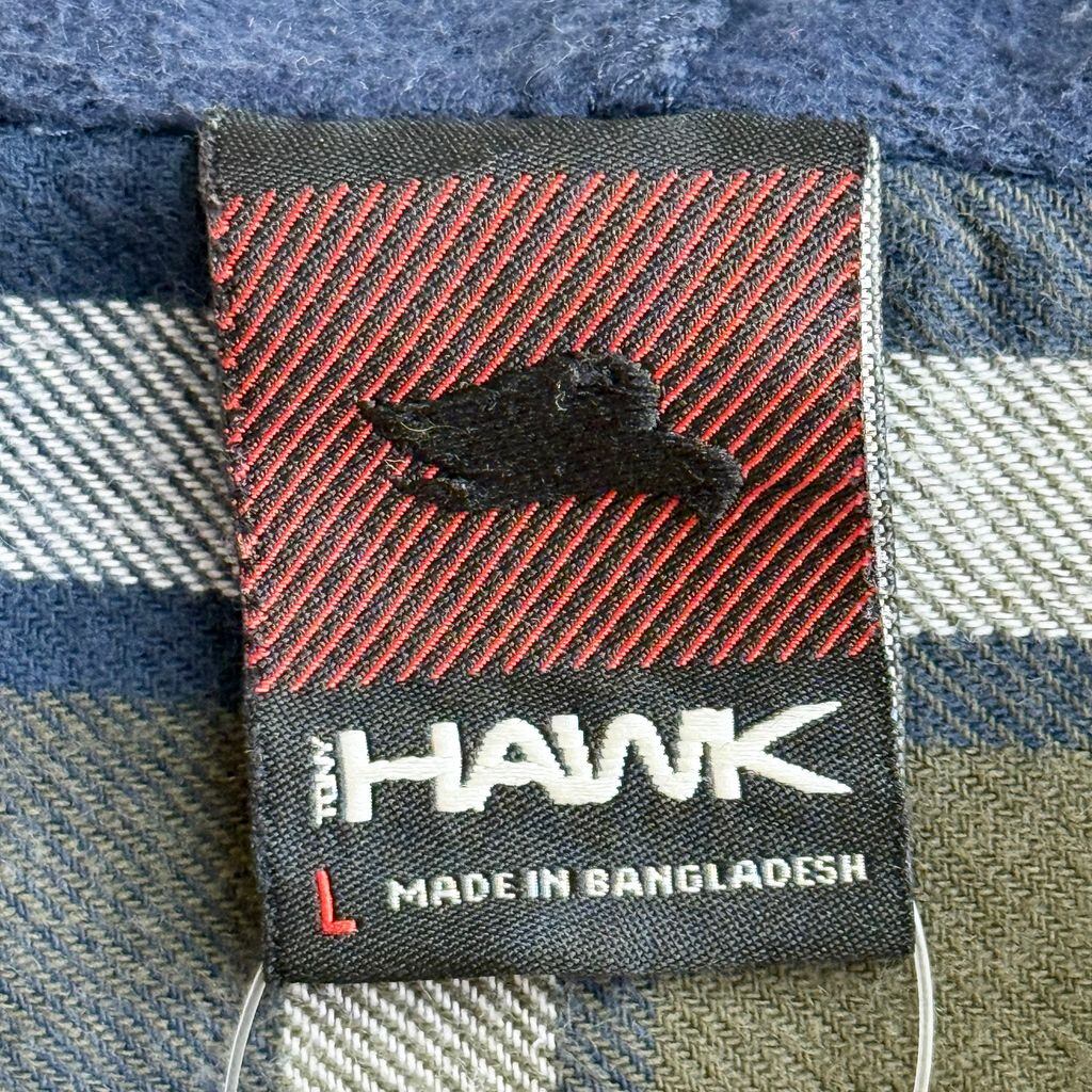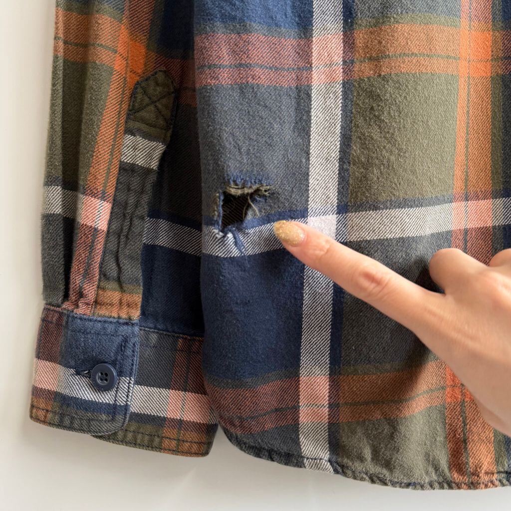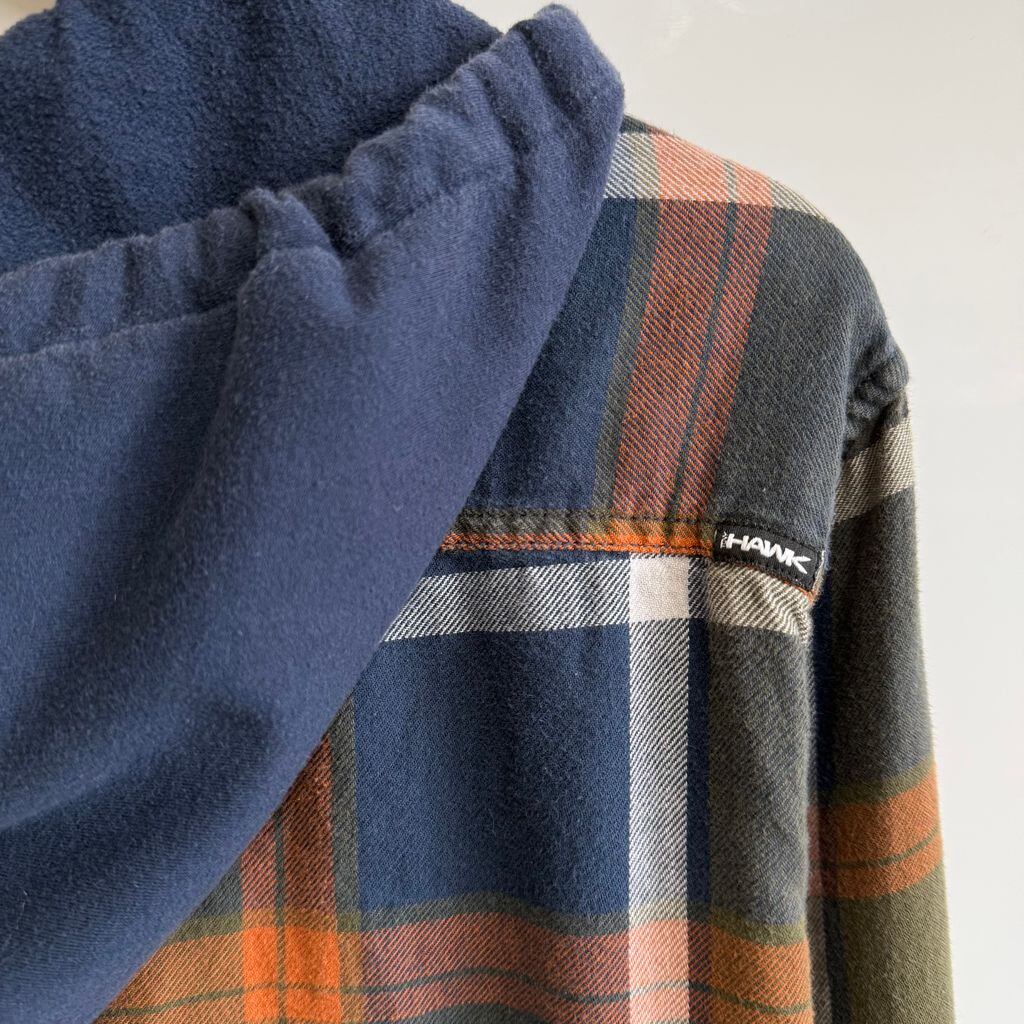 HAWK フード付き チェック柄 ポケット付き 長袖シャツ コットンシャツ フーディー パーカー 紺×カーキ×オレンジ×白 Lサイズ No.Y613