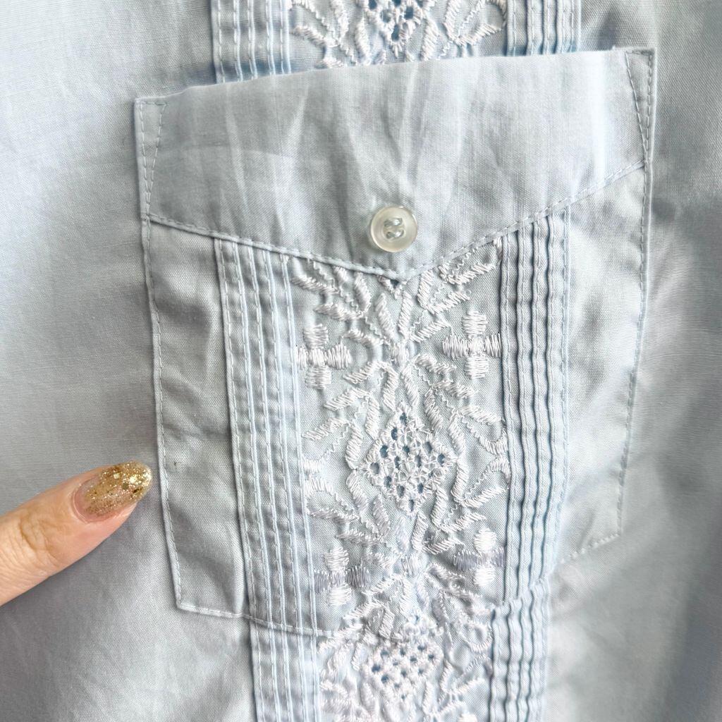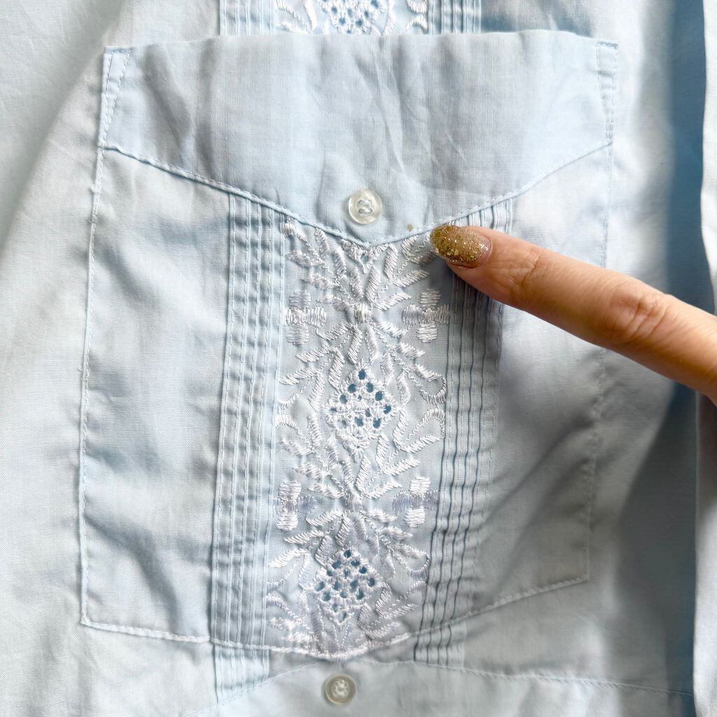 ROMANI キューバシャツ オープンカラー 開襟シャツ 刺繍 ポケット付き 半袖シャツ 水色 ブルー Lサイズ No.Y643
