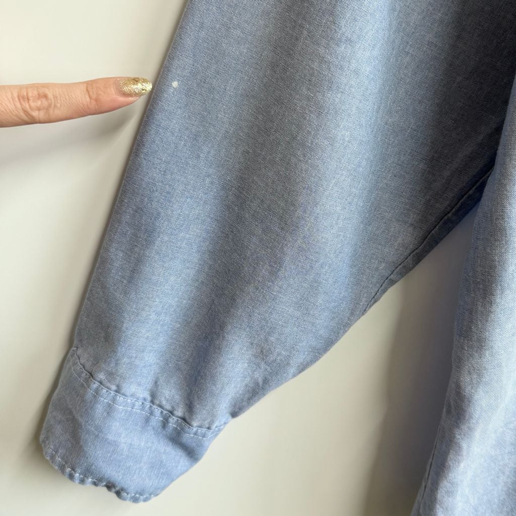 USA製 Fieldmaster 無地 ポケット付き 長袖シャツ ライトブルー 青 No.Y652