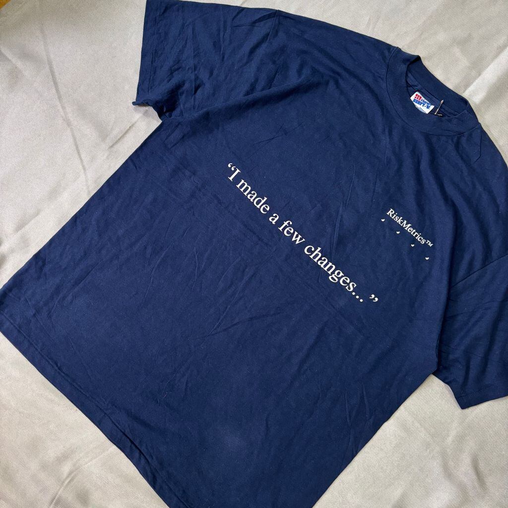 Hanes ヘインズ Tシャツ シンプル 両面プリント 紺 XL No.W022