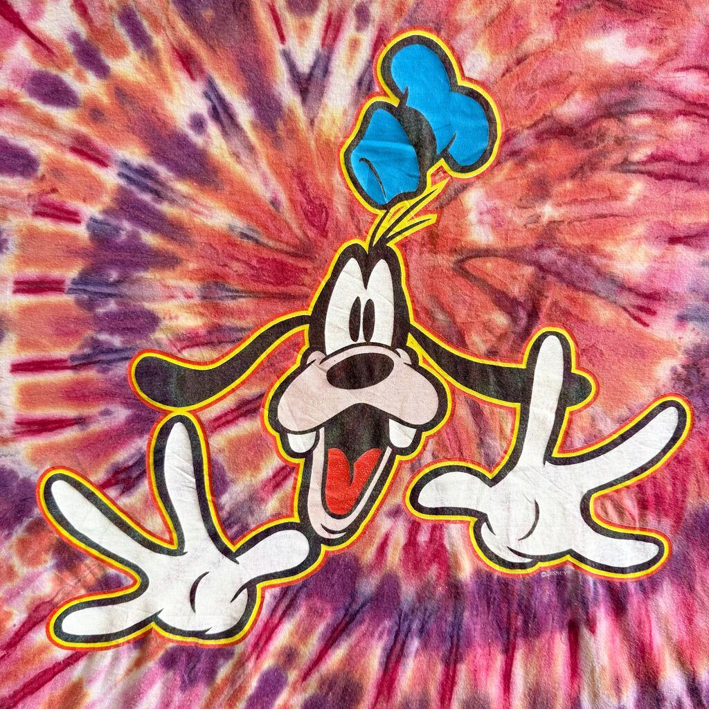Disney ディズニー タイダイ柄 グーフィー キャラクター シングルステッチ 半袖Tシャツ カラフル 多色 ピンク×オレンジ×紫系 No.Y710