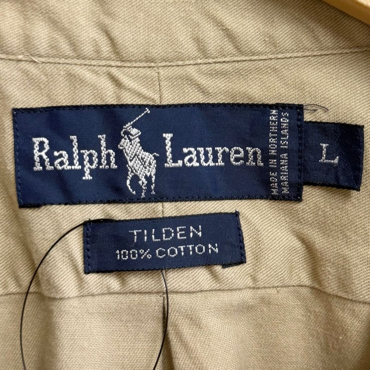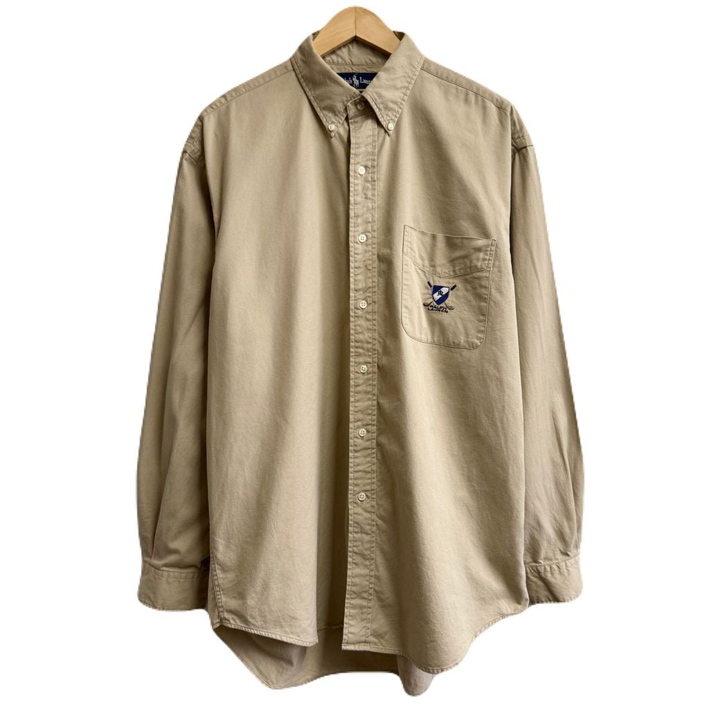 Ralph Lauren ラルフローレン ボタンダウンシャツ コットンシャツ ポケット付き 長袖シャツ ワンポイントロゴ 刺繍 ベージュ Lサイズ No.Y721