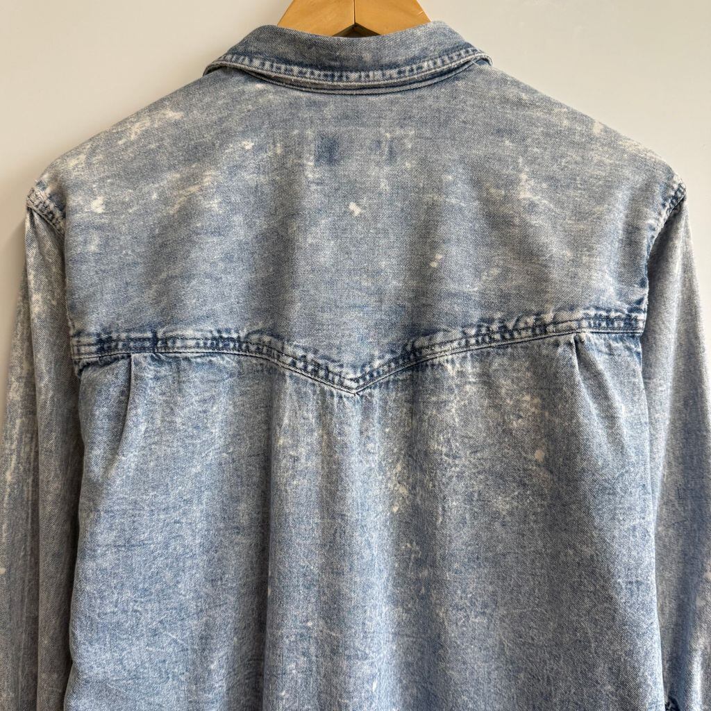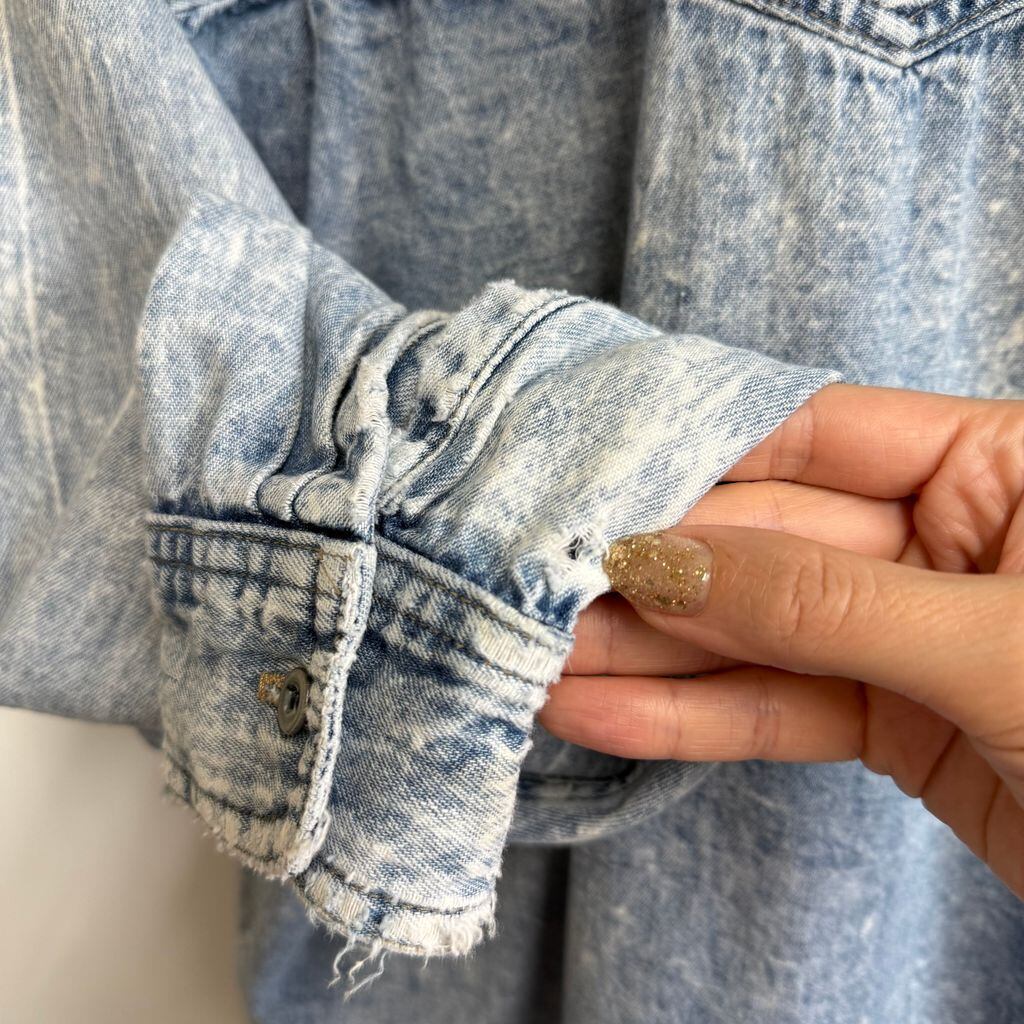 USA製 Calvin Klein カルバンクライン デニムシャツ コットンシャツ 胸ポケット付き 長袖シャツ ライトブルー 青 Mサイズ No.Y735