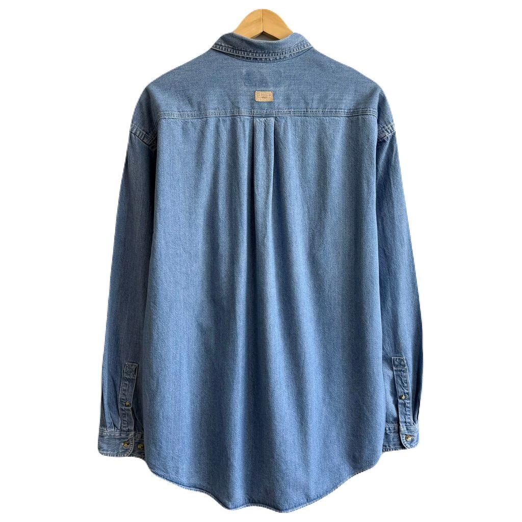 GEAR デニムシャツ ボタンダウンシャツ コットンシャツ Michigan ワンポイントロゴ 刺繍 胸ポケット付き 長袖シャツ 青 ブルー Lサイズ No.Y739
