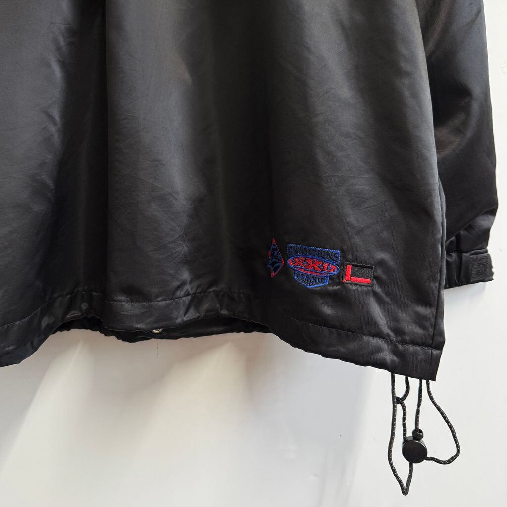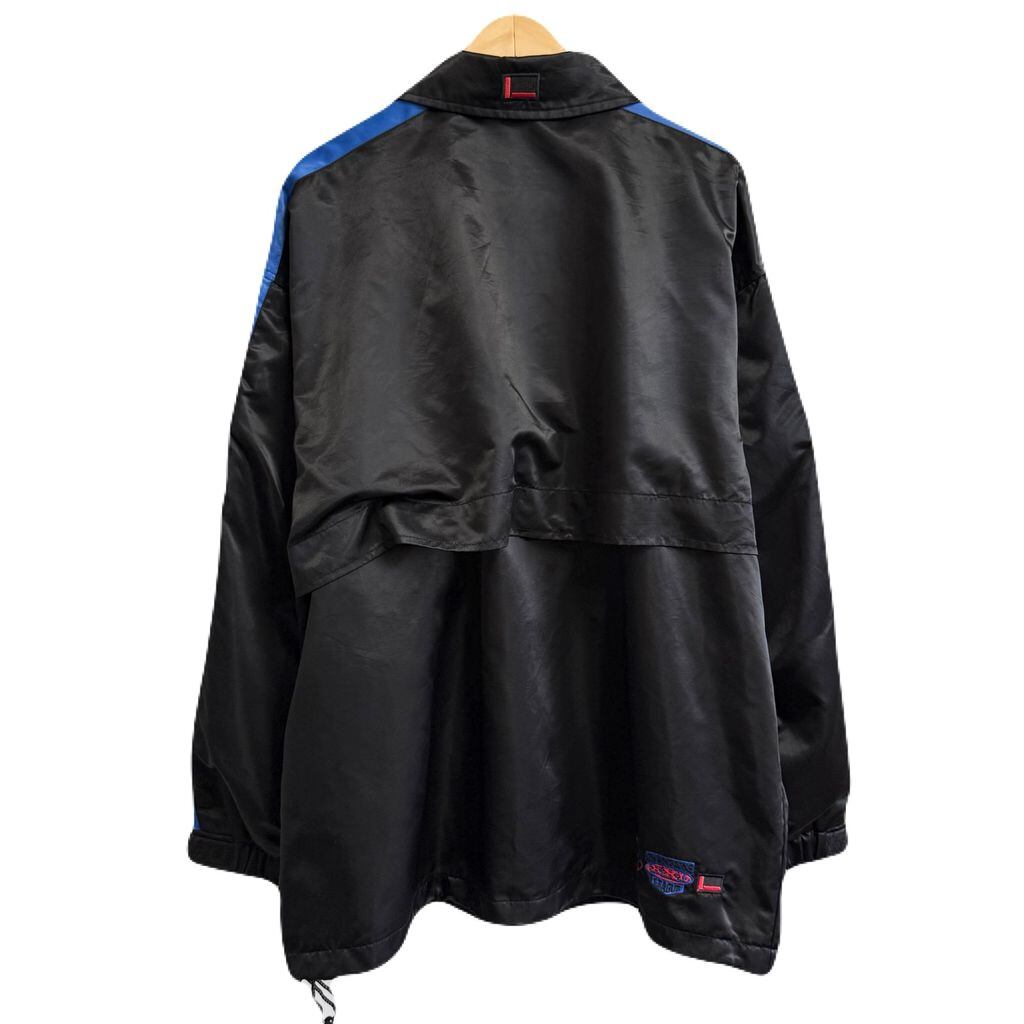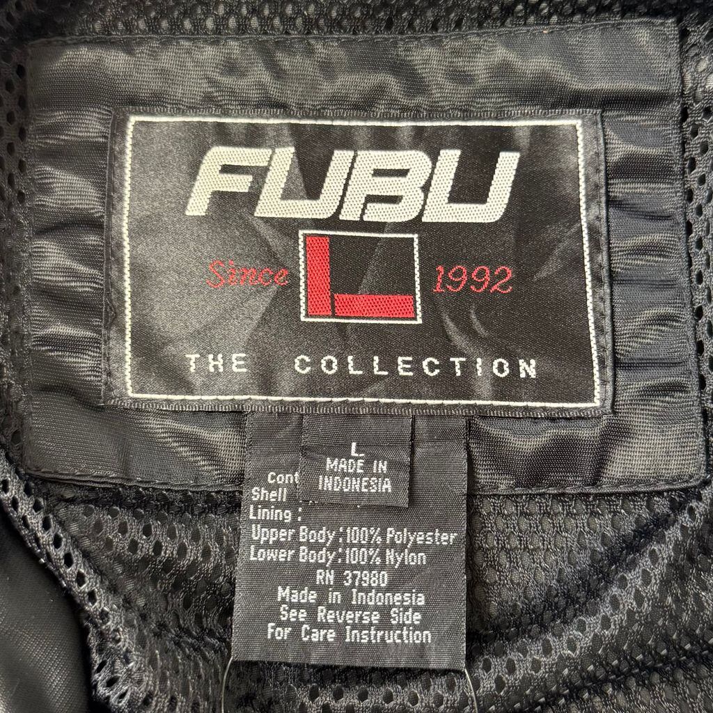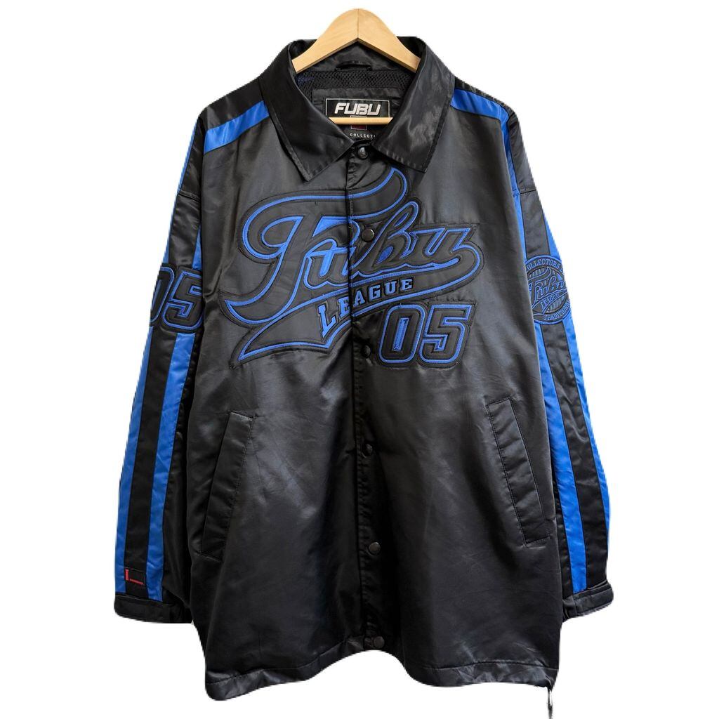 FUBU ナイロンジャケット フロントロゴ ワッペン 刺繍 コーチジャケット スナップボタン ポケット付き 黒×青 Lサイズ No.Y744