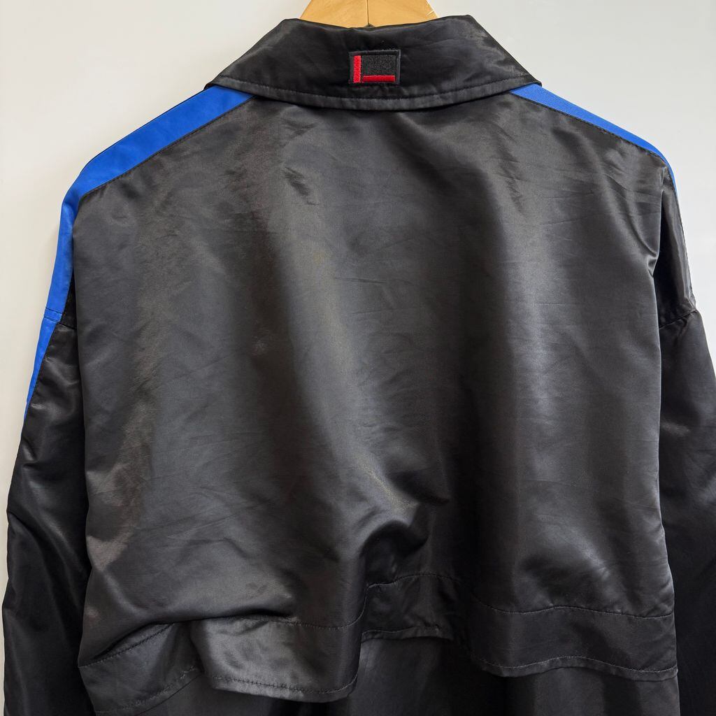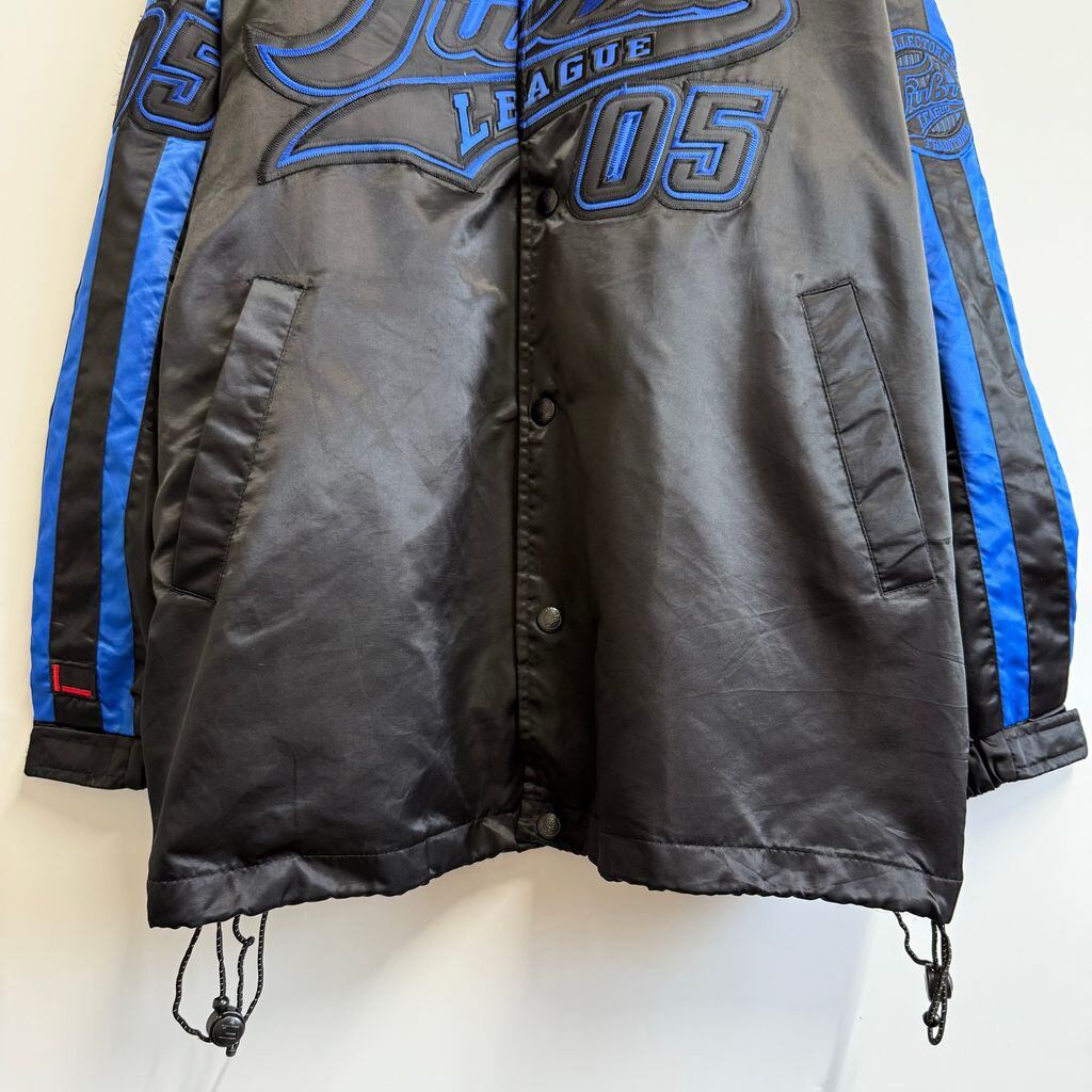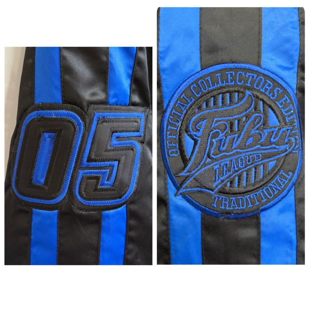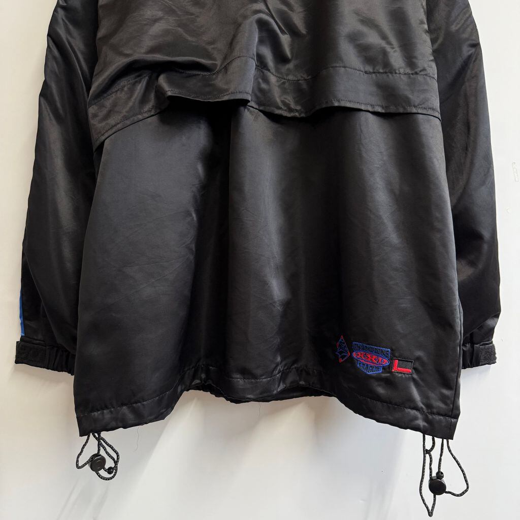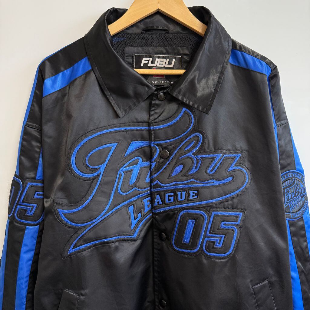 FUBU ナイロンジャケット フロントロゴ ワッペン 刺繍 コーチジャケット スナップボタン ポケット付き 黒×青 Lサイズ No.Y744