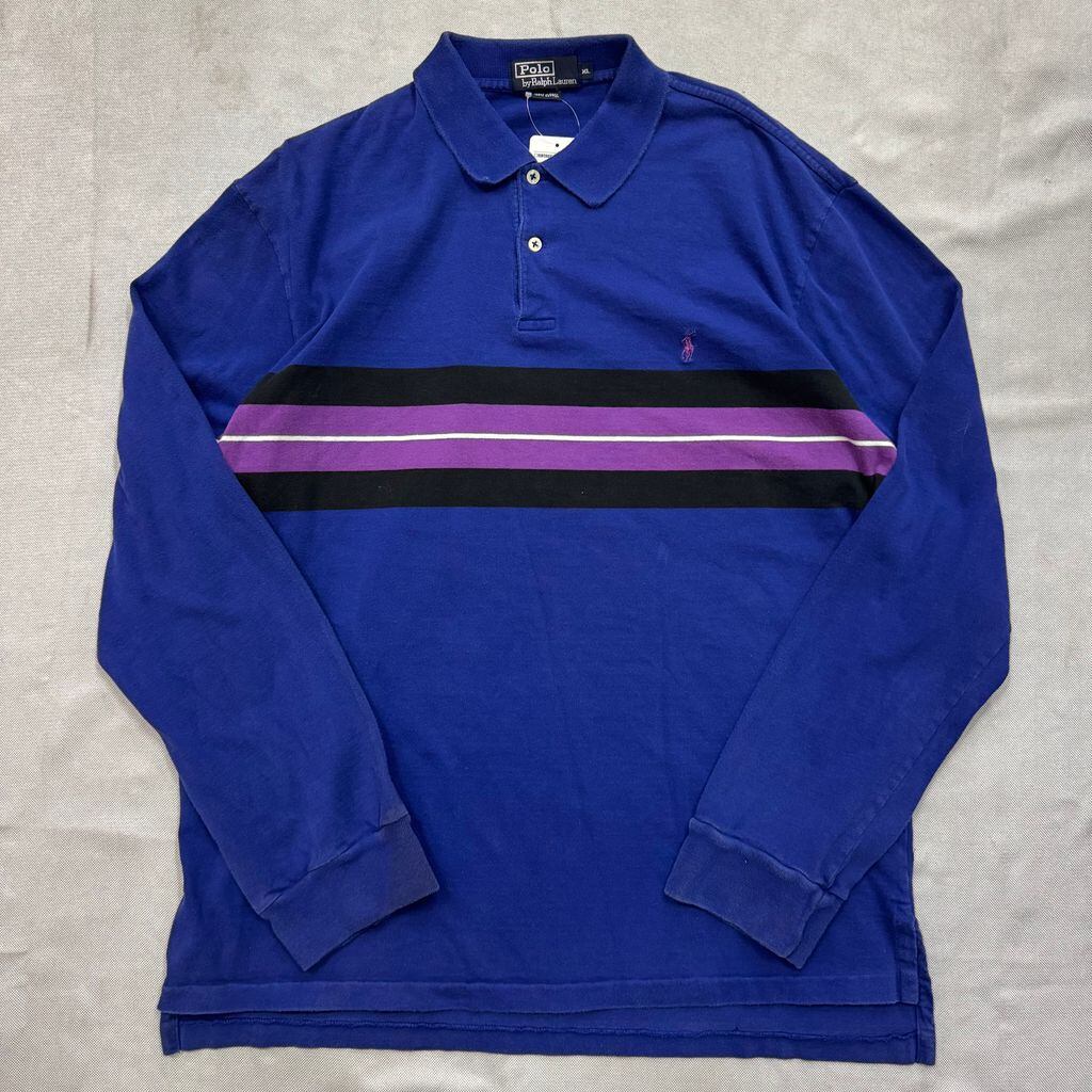 Polo by Ralph Lauren ポロ ラルフローレン ポロシャツ 長袖 青×紫×黒 XLサイズ No.E518