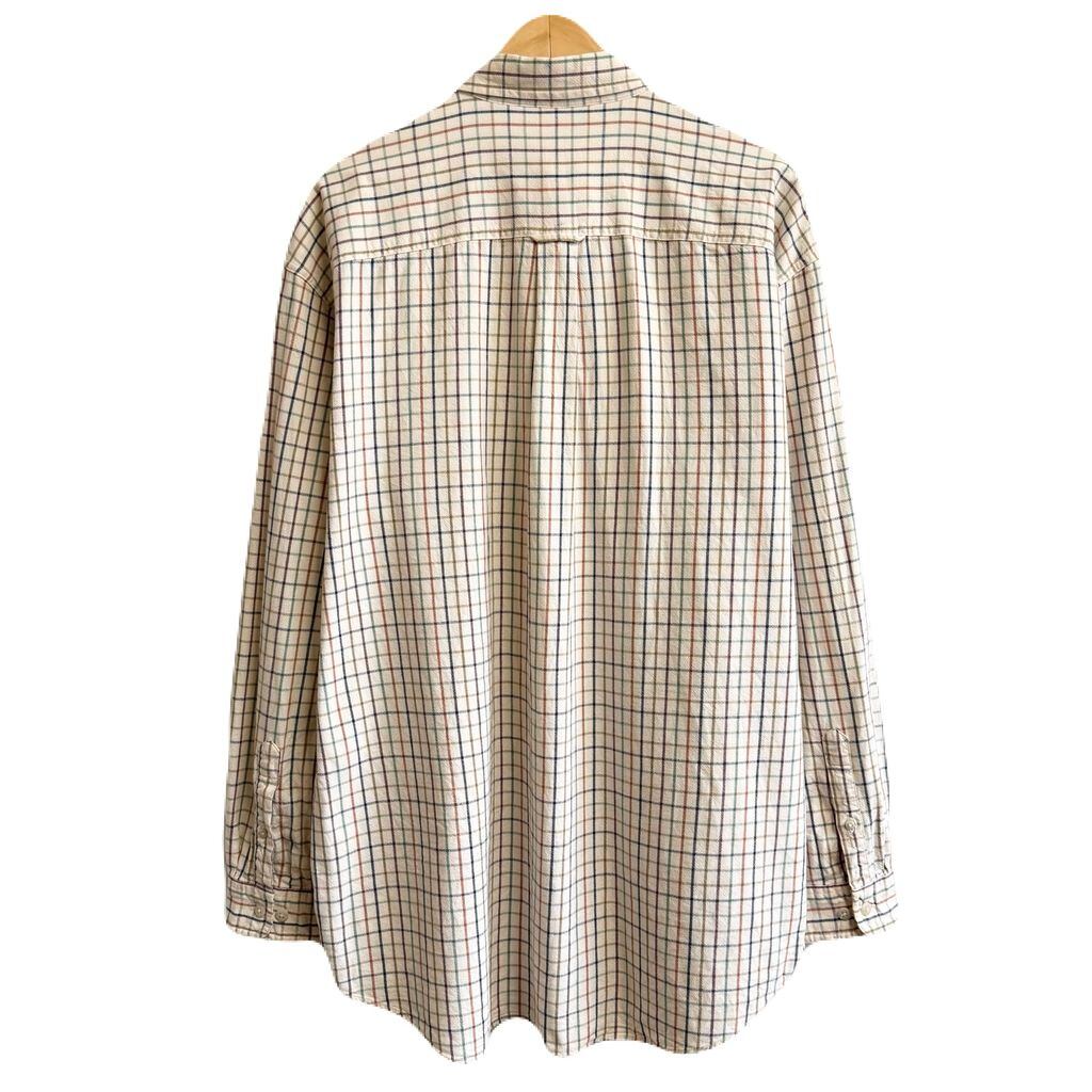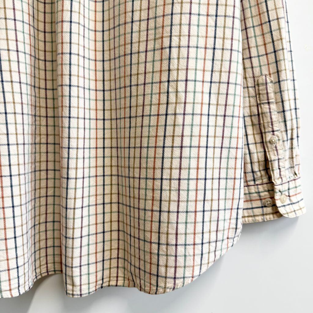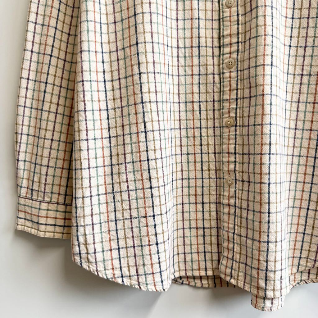 L.L.Bean エルエルビーン ボタンダウンシャツ コットンシャツ チェック柄 ポケット付き 長袖シャツ アイボリー×多色 カラフル XLサイズ No.Y762