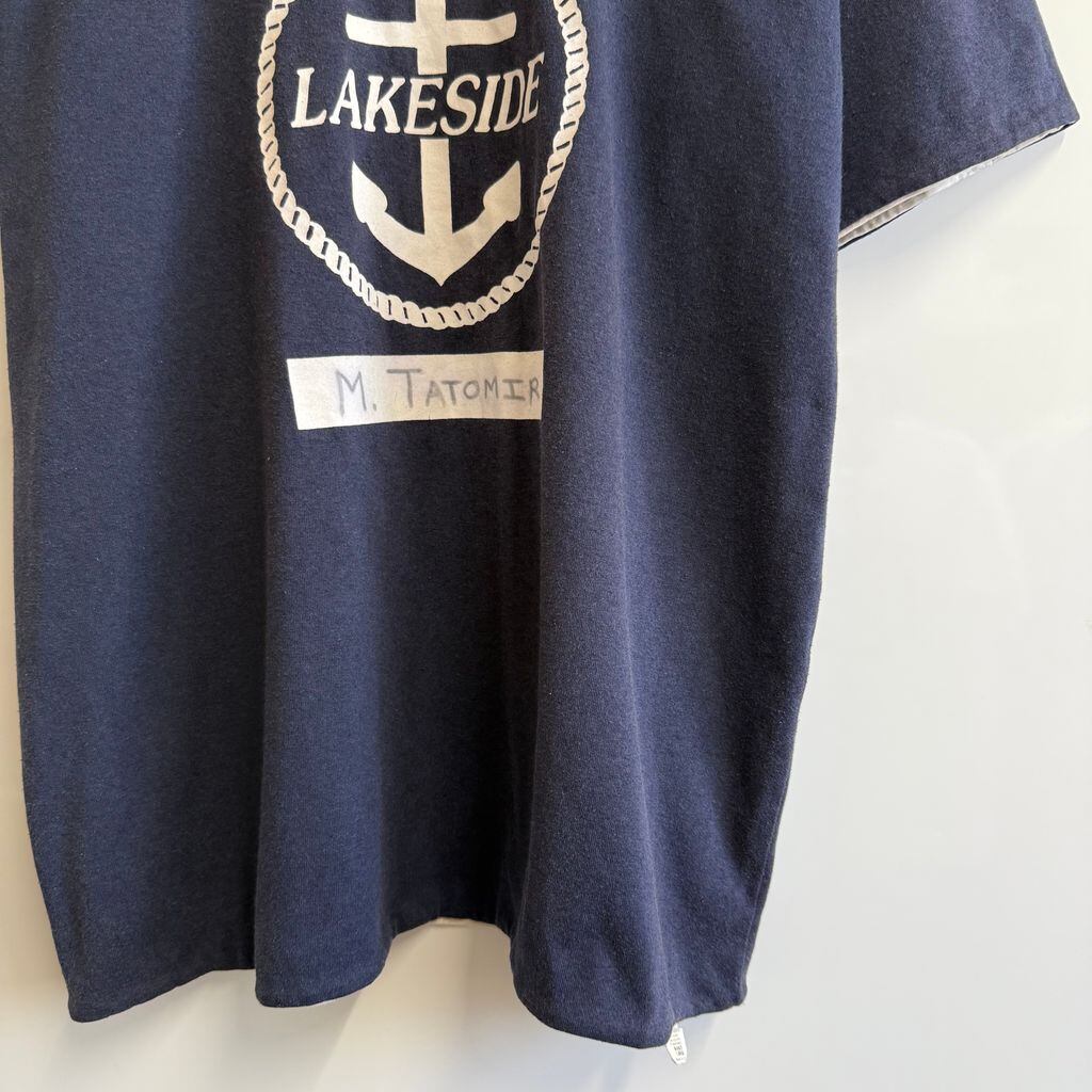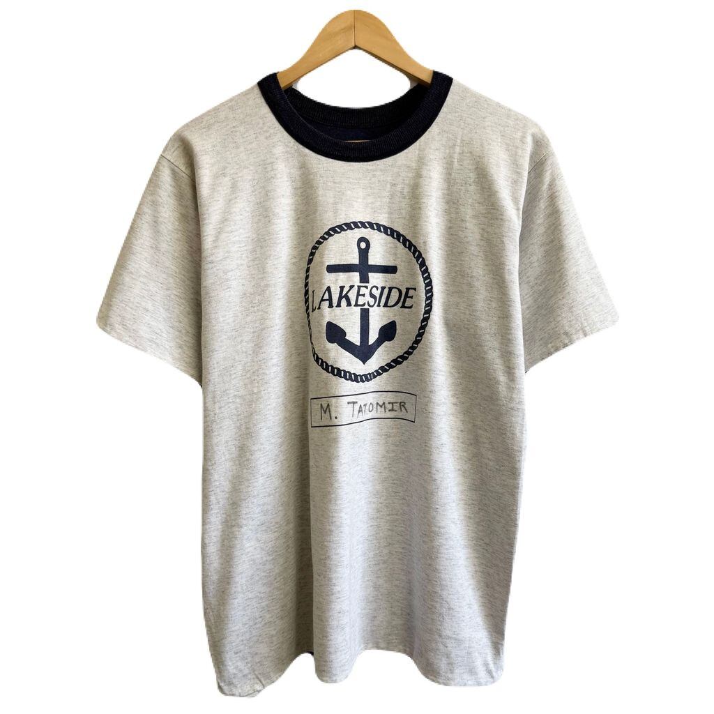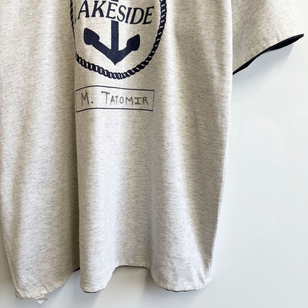 (リバーシブル) USA製 Double Face フロントプリント LAKESIDE 碇 いかり 半袖Tシャツ 紺×ライトグレー Lサイズ No.Y777