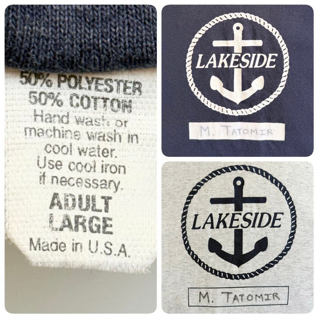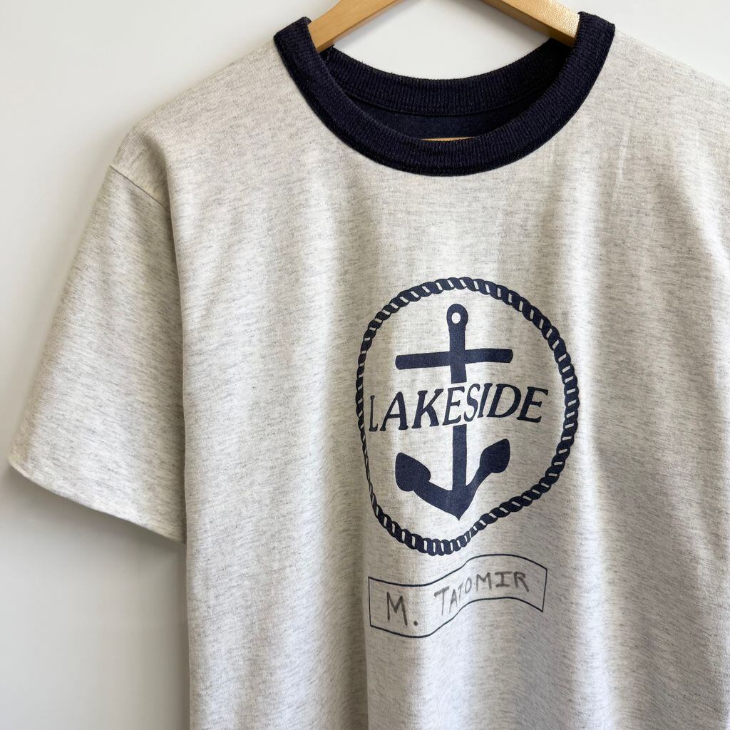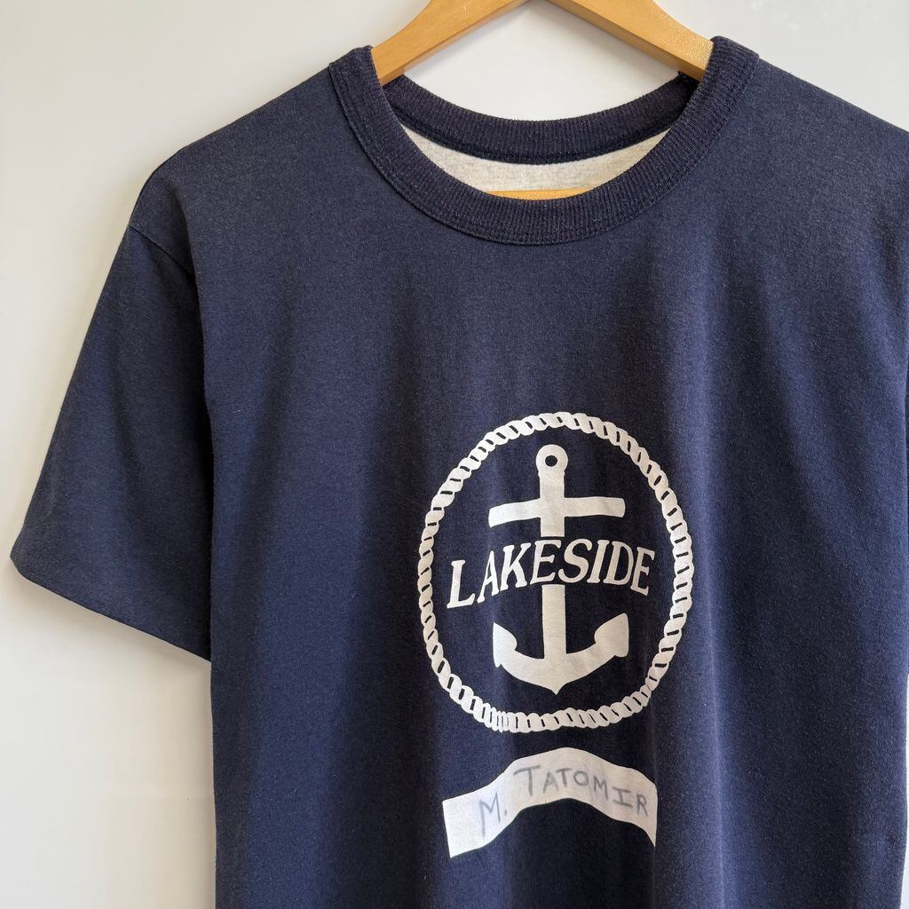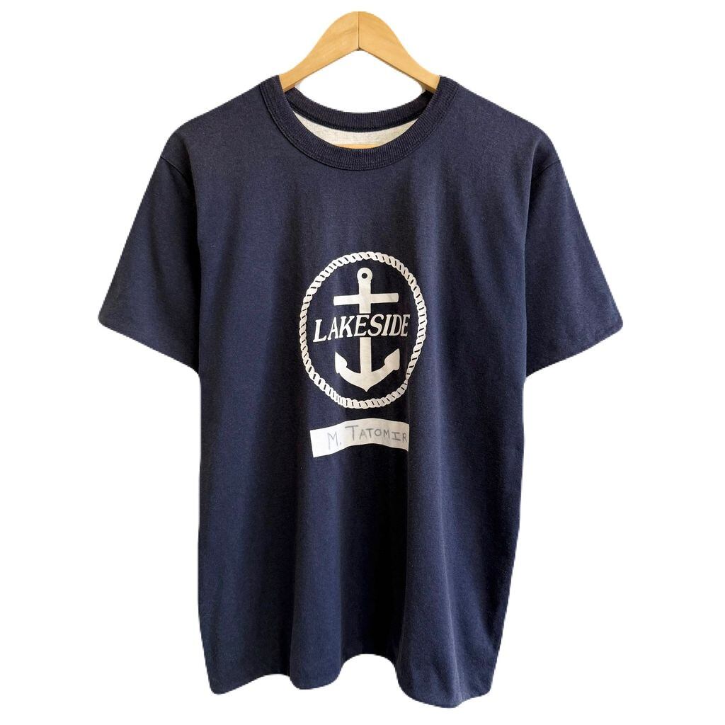 (リバーシブル) USA製 Double Face フロントプリント LAKESIDE 碇 いかり 半袖Tシャツ 紺×ライトグレー Lサイズ No.Y777